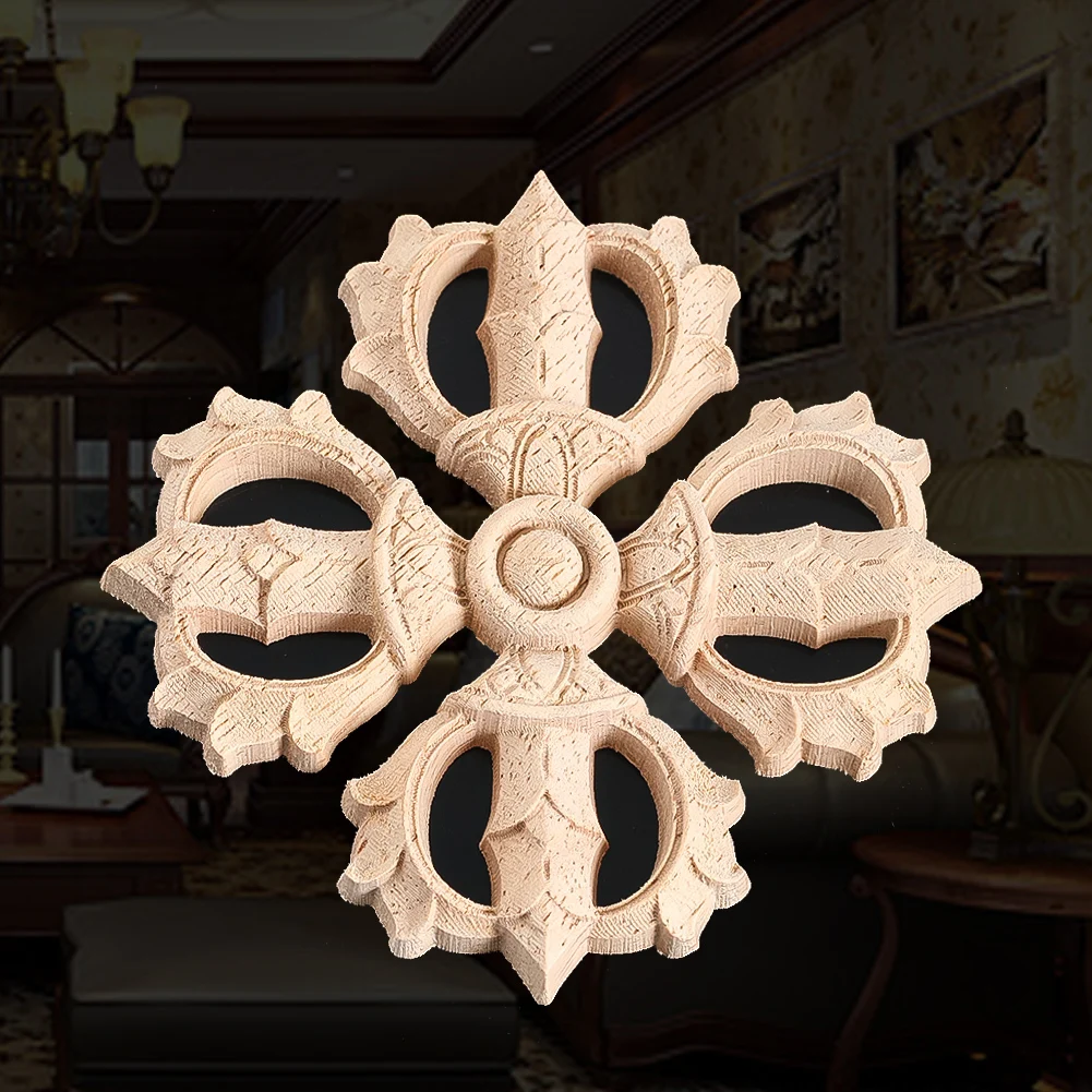 4 Stück Holz Applikationen Geschnitzt - Dekorative Ecken 20x10cm Für Möbel DIY