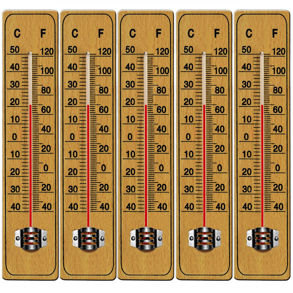 Dieses 6er-Set Holzthermometer bringt natürlichen Charme in dein Zuhause! Aus massivem, rauchgedämpftem Kiefernholz gefertigt, sind sie wetterbeständig von -40°C bis +50°C. Mit bimetallischer Messfeder und ±1°C Genauigkeit - super präzise! Die kontrastreiche Skala ist auch aus 3m Entfernung gut ablesbar. Maße: 22x4,7x0,7 cm. Einfach per Schlitzaufhängung oder Standfuß montieren - werkzeugfrei in 20 Sekunden! Durch Gumminoppen haften sie auch an glatten Flächen. Das skandinavische Design passt perfekt in Wohnzimmer, Küche oder Wintergarten. Aus FSC-zertifiziertem Holz - ökologisch und nachhaltig!