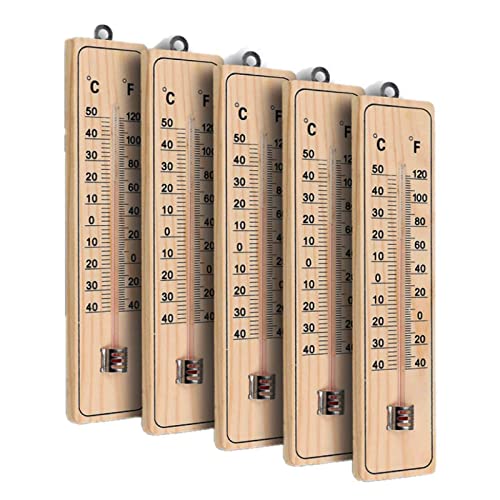 6 Stück Holz Thermometer Set - Analoge Raumthermometer Für Innen & Garten -40°C Bis +50°C