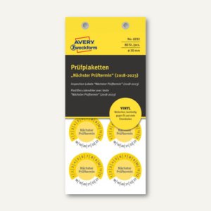 Die Plaketten sind speziell für wiederkehrende Prüfungen entwickelt - ob Wartungen, Kalibrierungen oder Sicherheitsinspektionen. Mit den 100 Stück in Gelb (30 mm Durchmesser) seid ihr erstmal gut ausgestattet. Und praktisch: Es gibt sie in verschiedenen Farben - so könnt ihr jedes Jahr eine andere Farbe wählen und behaltet immer den perfekten Überblick.