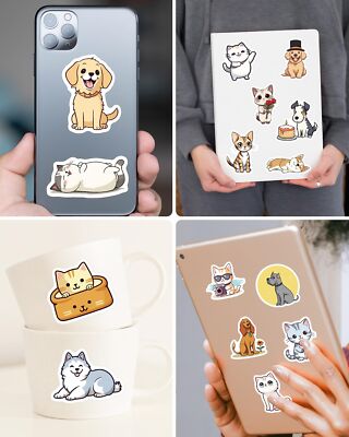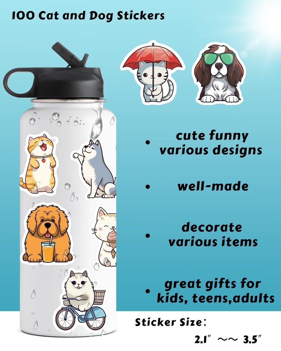 200 Stück Katze Hund Aufkleber - Wasserdichte Vinyl Sticker Für Laptop & Mehr