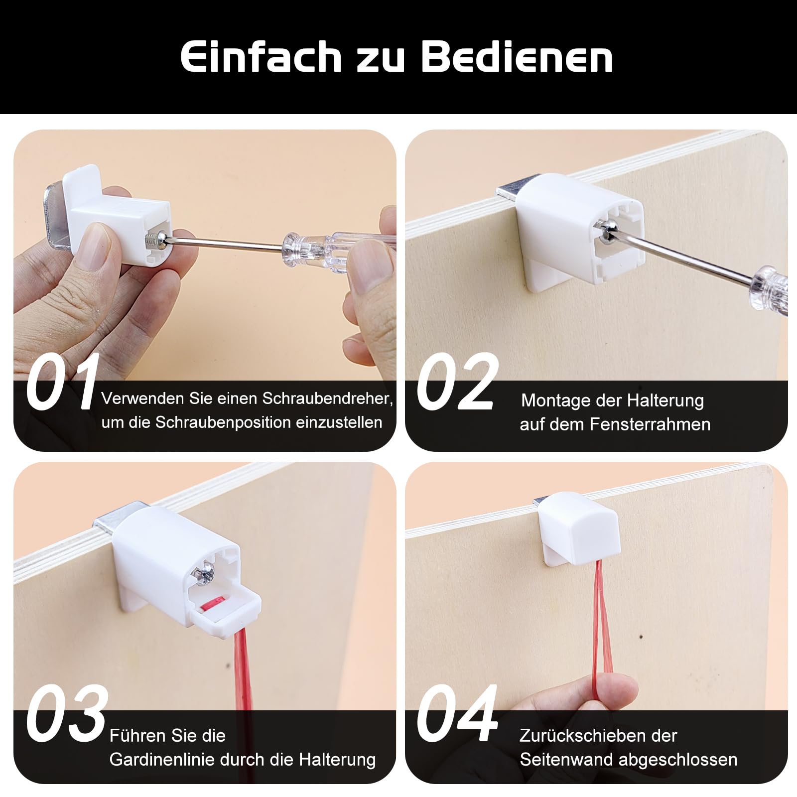 Schluss mit lästigem Bohren! Diese 8 Klemmträger machen die Montage deiner Plissees zum Kinderspiel. Einfach aufsetzen, festklemmen und fertig - keine Löcher, kein Dreck, kein Stress!\\n\\nDie robuste Kombination aus Kunststoff und Metall garantiert Langlebigkeit ohne Verformungen. Durch eine einfache Schraube passt du die Breite des Clips individuell an - perfekt für Holz- und Kunststofffenster bis 20mm Stärke.\\n\\nKompatibel mit den meisten Jalousien und Plissees verschiedener Hersteller. Die werkzeugfreie Montage spart dir Zeit und Nerven, und wenn du umziehst, kannst du die Träger einfach wieder abnehmen.\\n\\nIm praktischen 8er-Set hast du genug Halterungen für mehrere Fenster oder Ersatz parat. Endlich eine saubere Lösung für deine Beschattung - ohne Bohrmaschine und ohne handwerkliches Geschick!