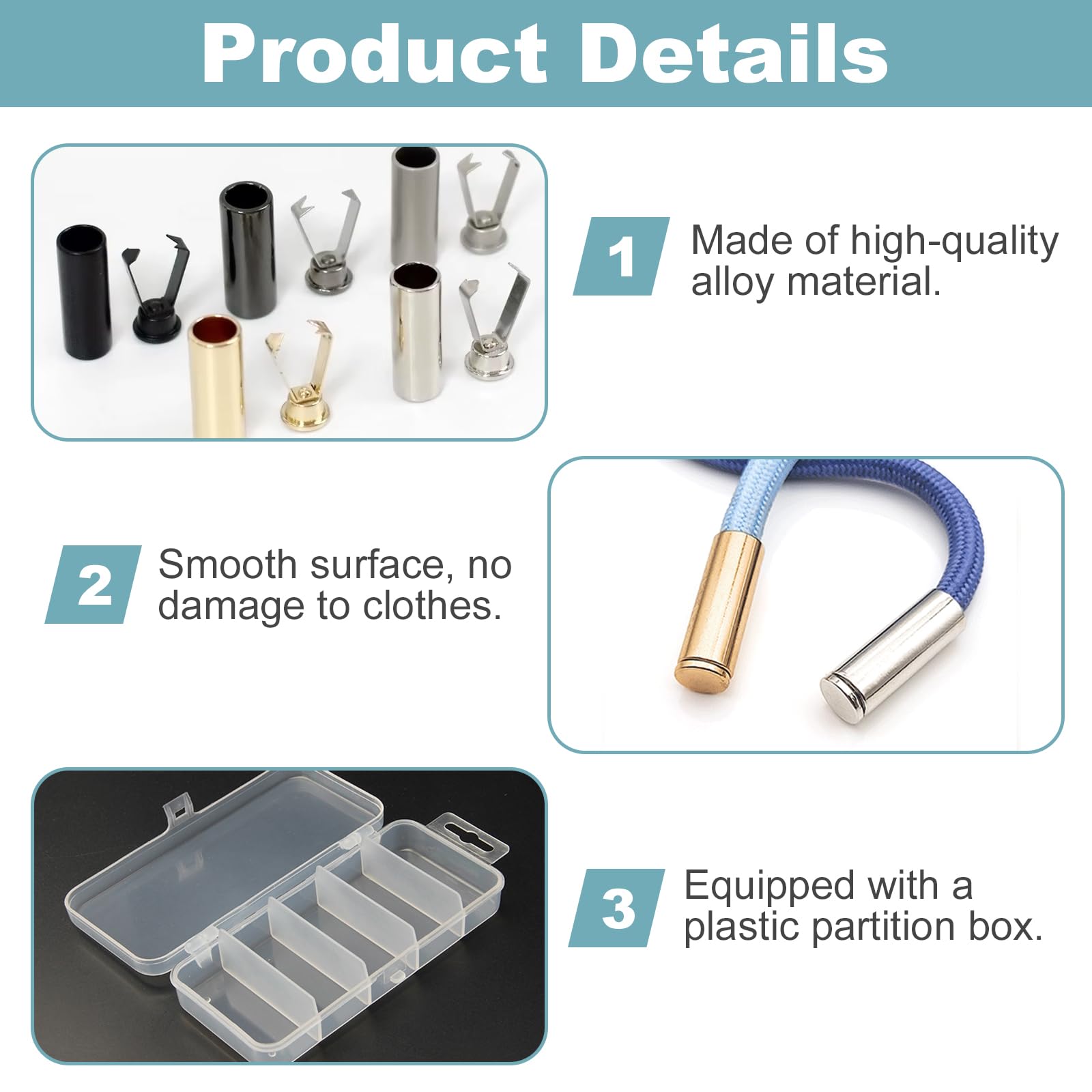 100 Stück Kordelenden Metall - 5 Farben Kordelstopper Für Hoodies & Hosen