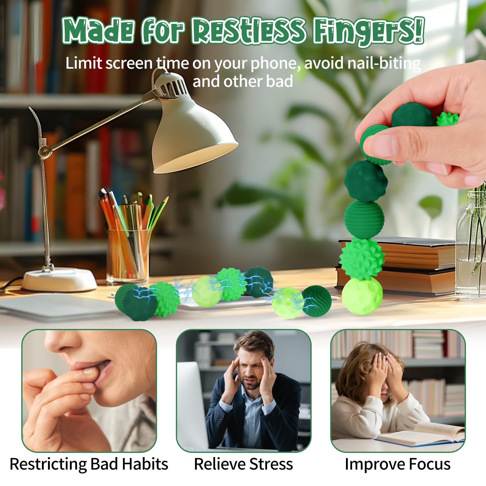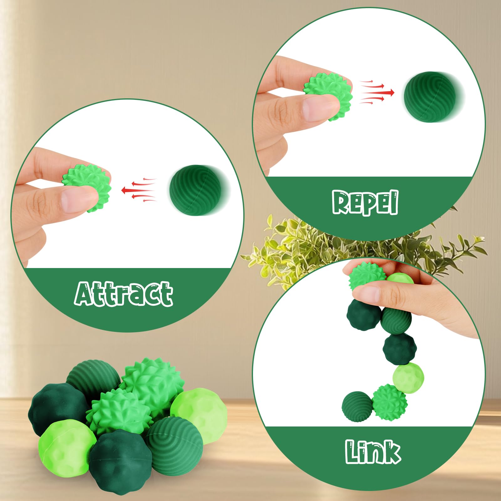 Stress adé mit diesen coolen magnetischen Fidget Toys! 8 Stück im Set mit praktischer Aufbewahrungsbox - immer griffbereit wenn die Nerven blank liegen. Aus weichem, antistatischem Silikon mit magnetischen Perlen drin - fühlt sich super angenehm an. Einfach drücken, drehen oder kneten und der Stress verfliegt. Perfekt fürs Büro, Meetings oder beim Lernen - ganz leise und unauffällig. Hilft gegen Nägelkauen, Fingerknöchelkauen und andere nervöse Angewohnheiten. Auch super für Menschen mit ADHS oder Autismus - fördert die Konzentration und beruhigt. Klein und leicht - passt in jede Tasche für unterwegs. Ob im Stau, in der Bahn oder einfach zu Hause auf dem Sofa - diese Fidget Bälle sind deine besten Begleiter für mehr Gelassenheit im Alltag!