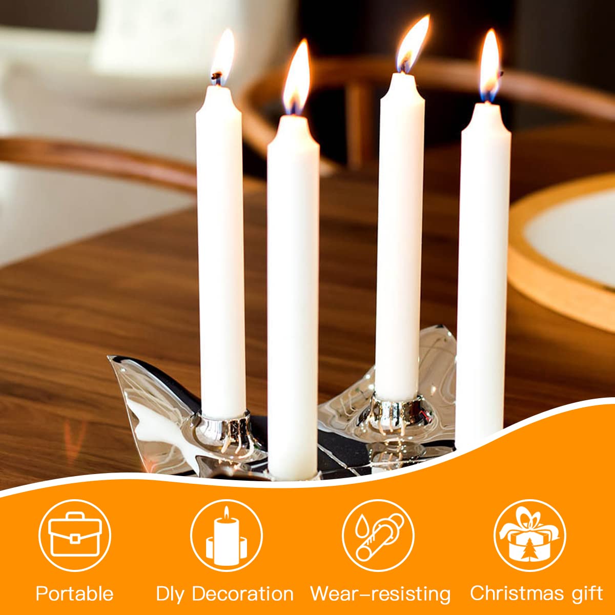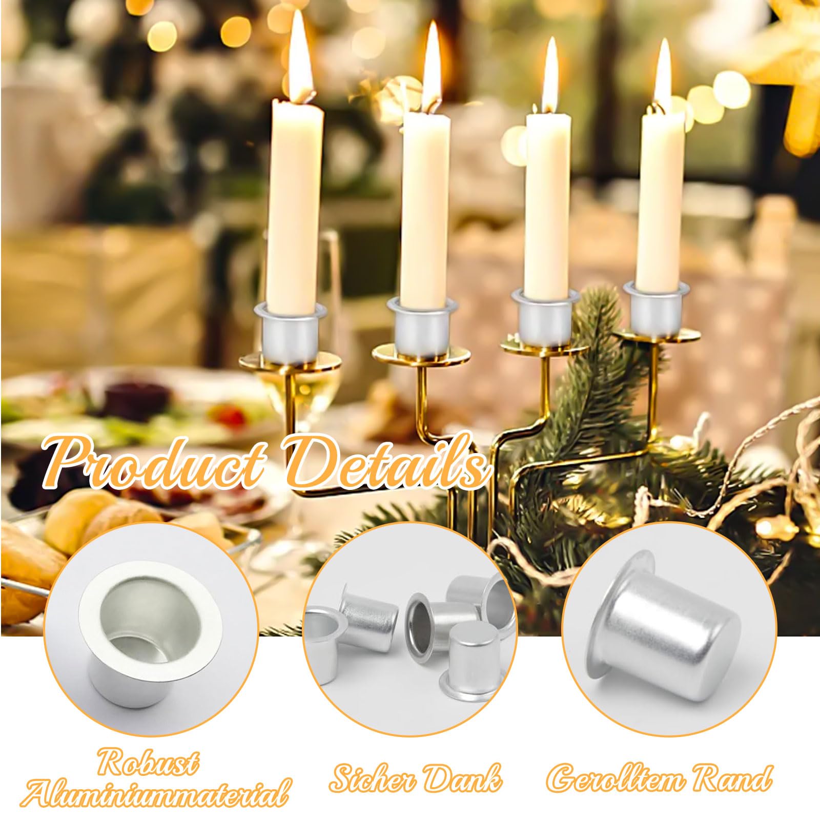 Perfekt für alle Bastelfans und Weihnachtsfreunde! Diese 40 Mini-Kerzenhalter aus Aluminium sind echte Alleskönner. In silber und mit Innendurchmesser von 11,8mm (unten) bis 12,6mm (oben) passen sie perfekt für Baumkerzen, Teelichter und kleine Stabkerzen. Nur 15mm hoch und super leicht. Ideal für Weihnachtspyramiden, Adventsgestecke, Schwibbögen oder Tischdekorationen. Einfach in Holz, Beton oder sogar Äpfel stecken - das Loch sollte ca. 13-14mm haben. Wenn die Kerze mal wackelt, einfach etwas heißes Wachs rein träufeln für festen Halt. Schützt deine Basteleien vor Wachsflecken und gibt den Kerzen sicheren Stand. Mit 40 Stück im Set hast du genug für mehrere Projekte oder kannst sie mit Freunden teilen. Bastelspaß garantiert!