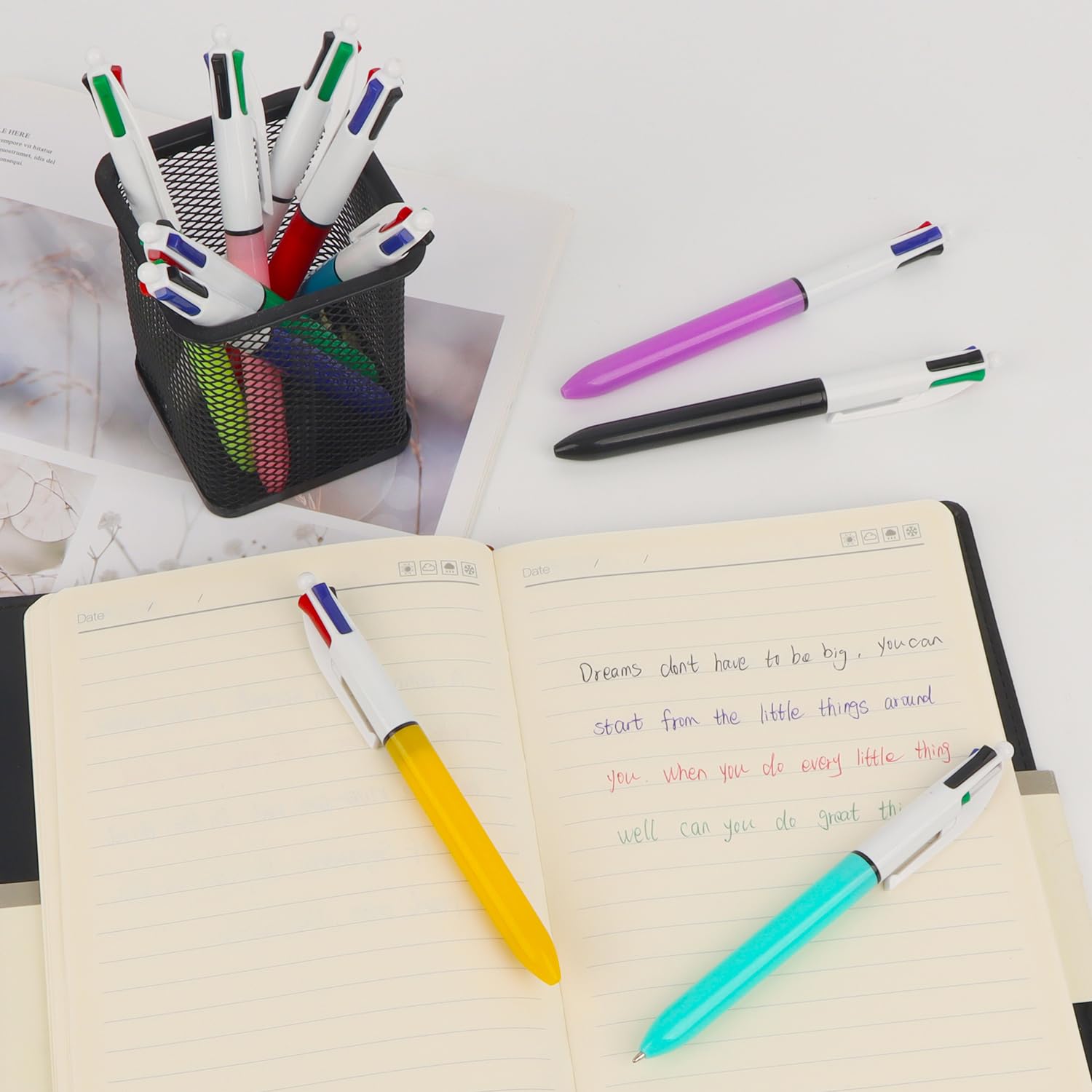 OWill 4-Farben Kugelschreiber Set - 11 Stück Mit 1,0mm Spitze Für Schule & Büro