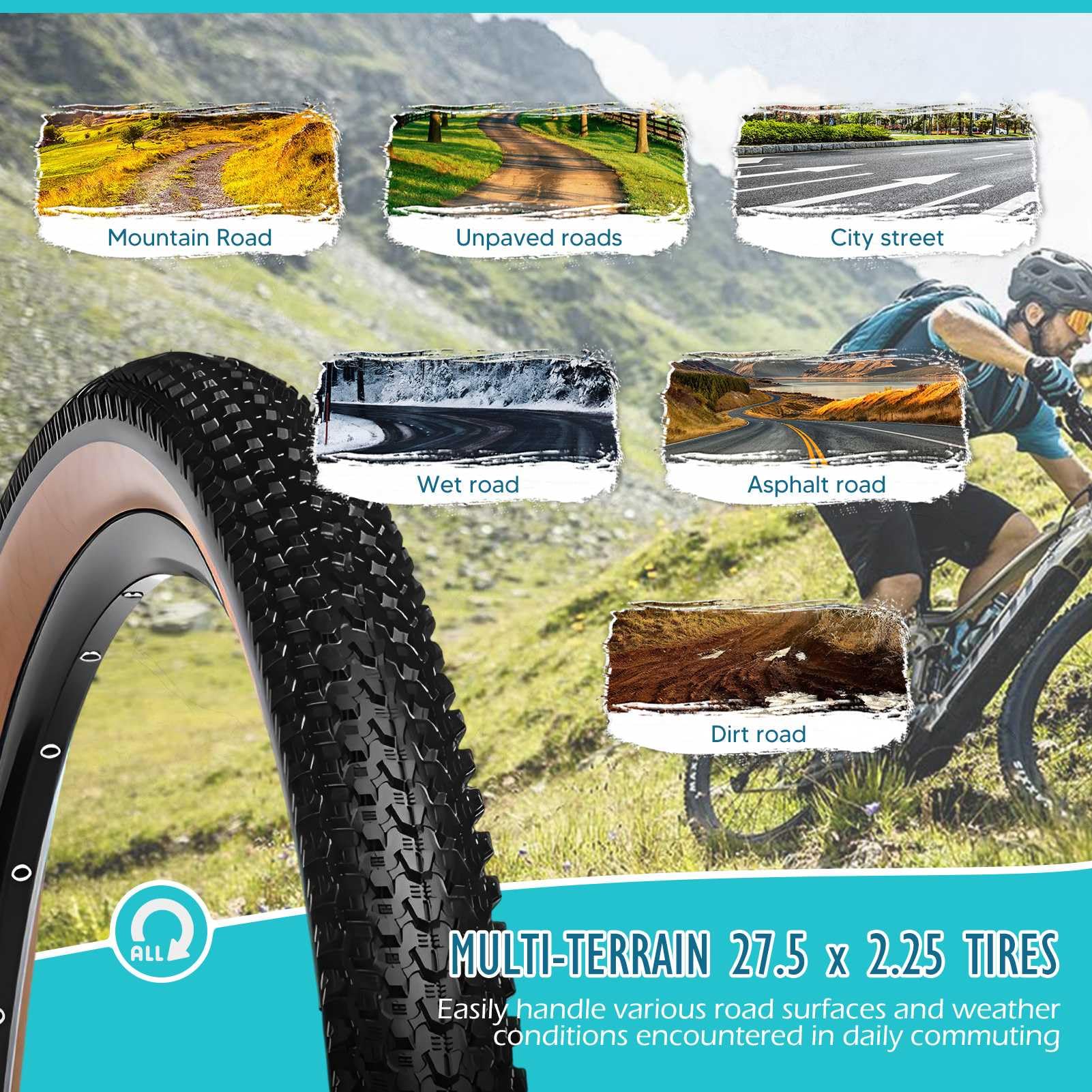 27,5 Zoll Fahrradreifen Set - 2 Stück Mit Brauner Seitenwand, Pannensicher & Langlebig Für MTB & Citybikes