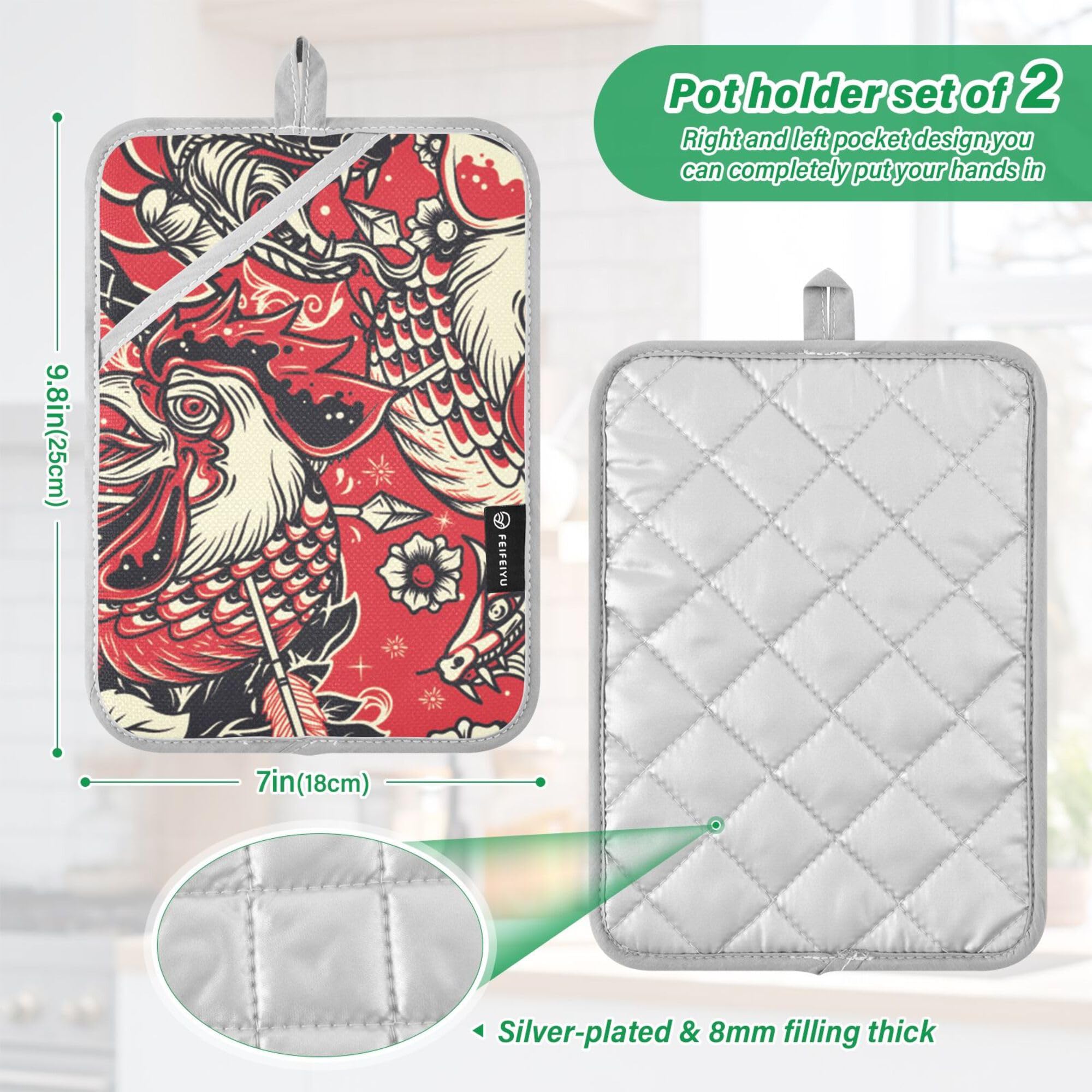 Sicherheit in der Küche! Diese 2 Topflappen in Terrakotta-Farbe sind hitzebeständig bis 350°C. Mit praktischem Taschen-Design für linke und rechte Hand - so sitzen sie perfekt und schützen vor Dampf und Hitze. Maße 25x18 cm, mit weichem Innenfutter für Komfort und Schweißreduzierung. Rückseite mit Aufhängeschlaufe für platzsparende Lagerung. Aus silberbeschichtetem Stoff mit Baumwollfutter, flecken- und dampfbeständig. Perfekt für Töpfe, Pfannen, Backofen und Mikrowelle. Können auch als Untersetzer verwendet werden. Einfach zu reinigen, machen jede Küche sicherer und ordentlicher!