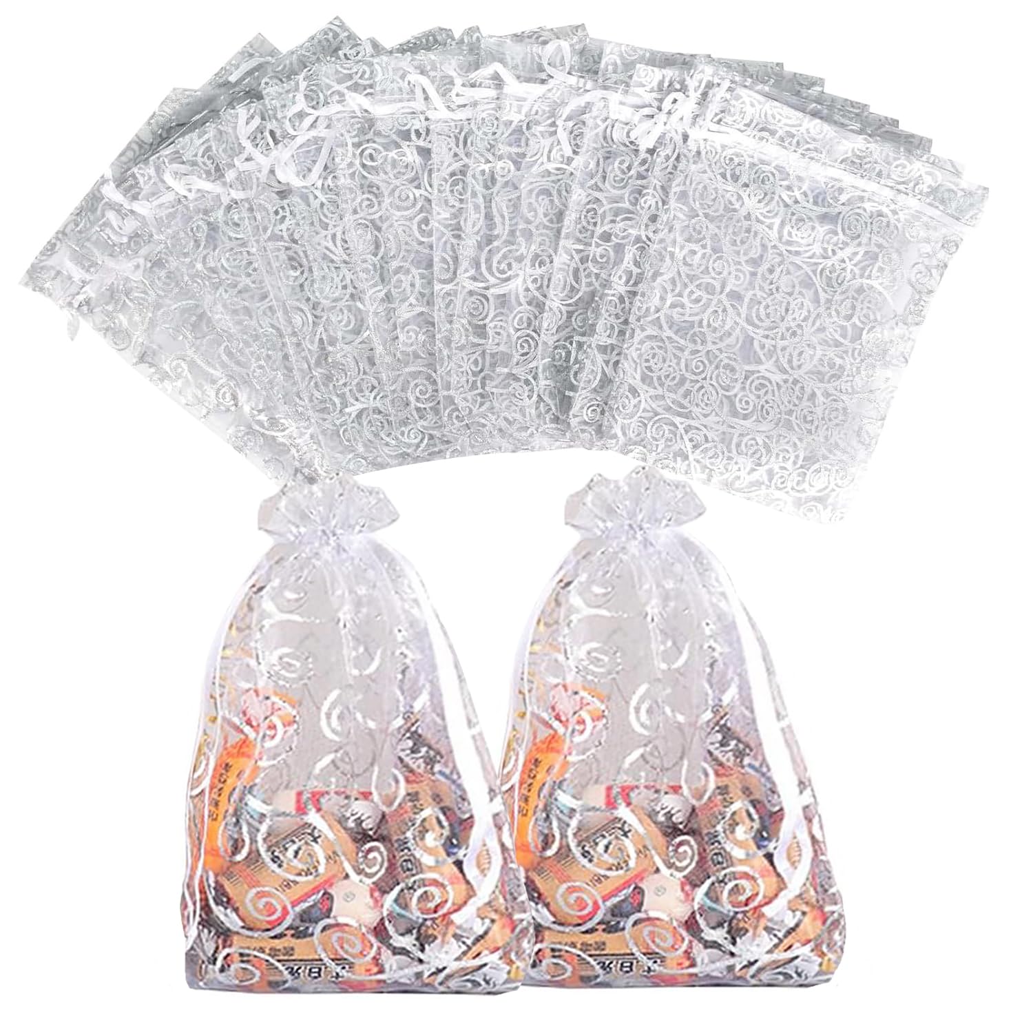 Diese 50 Organza-Säckchen sind einfach perfekt für alle Geschenkideen! Mit den Maßen 15x20 cm bieten sie genug Platz für Schmuck, Süßigkeiten, Seifen, Kerzen oder Potpourri. Das silberne Rankenmuster auf dem hochwertigen Organza-Stoff sieht einfach elegant aus. Der praktische Satin-Kordelzug sorgt dafür, dass nichts herausfällt und das Öffnen und Schließen super einfach ist. Perfekt für Hochzeiten, Weihnachten, Geburtstage, Valentinstag oder andere Feste. Ob als Geschenkverpackung für Gastgeschenke, als Schmuckbeutel oder für DIY-Projekte - diese Taschen machen jedes Präsent noch specialer. Umweltfreundlich und sicher in der Anwendung, sind sie ein echter Allrounder für alle, die ihre Geschenke stilvoll verpacken möchten. Mit 50 Stück hast du genug für alle Anlässe!