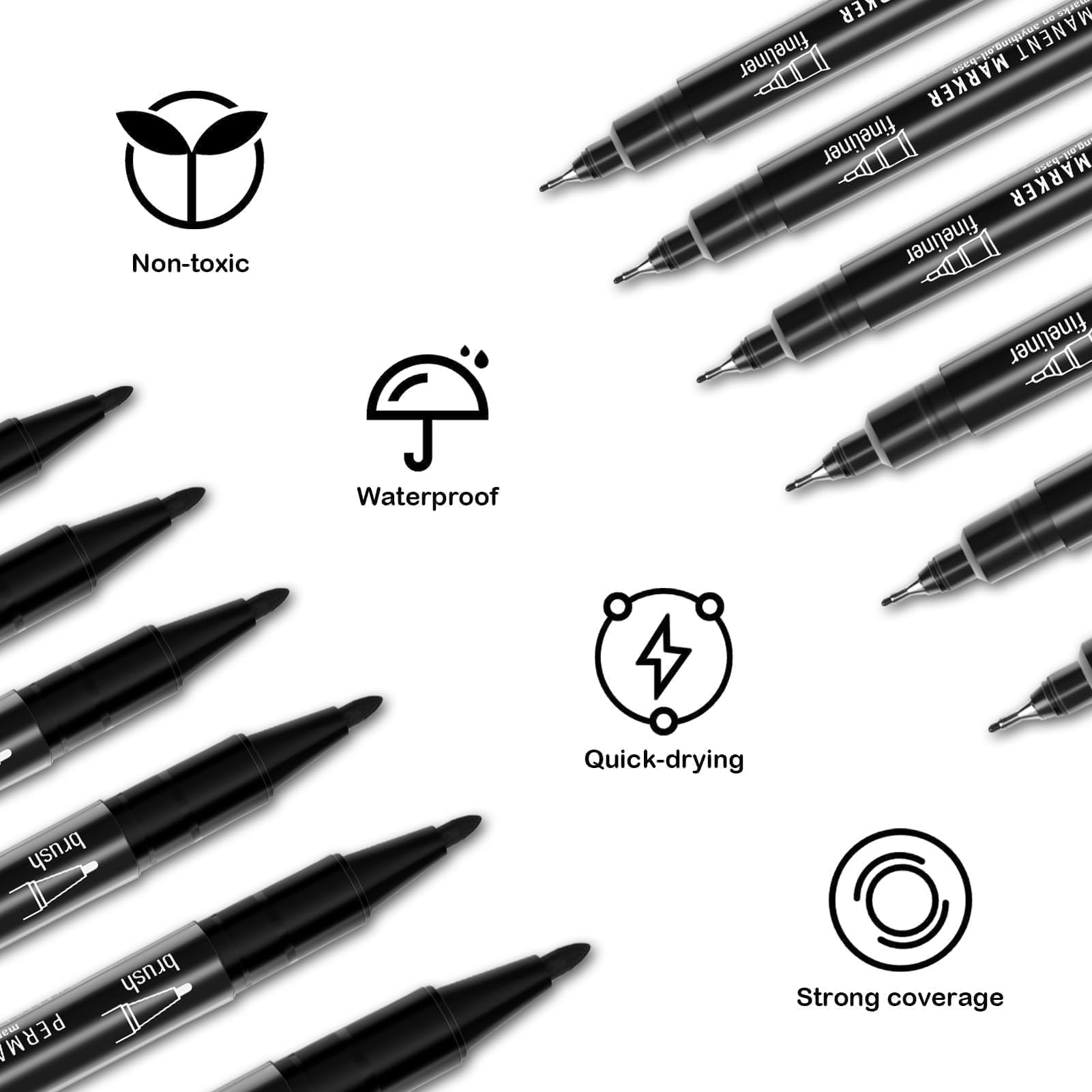 6 Stück Permanent Marker Fein - 0.5/1.0mm Doppelspitze Schwarz Für Glas, Stein, Holz & Keramik