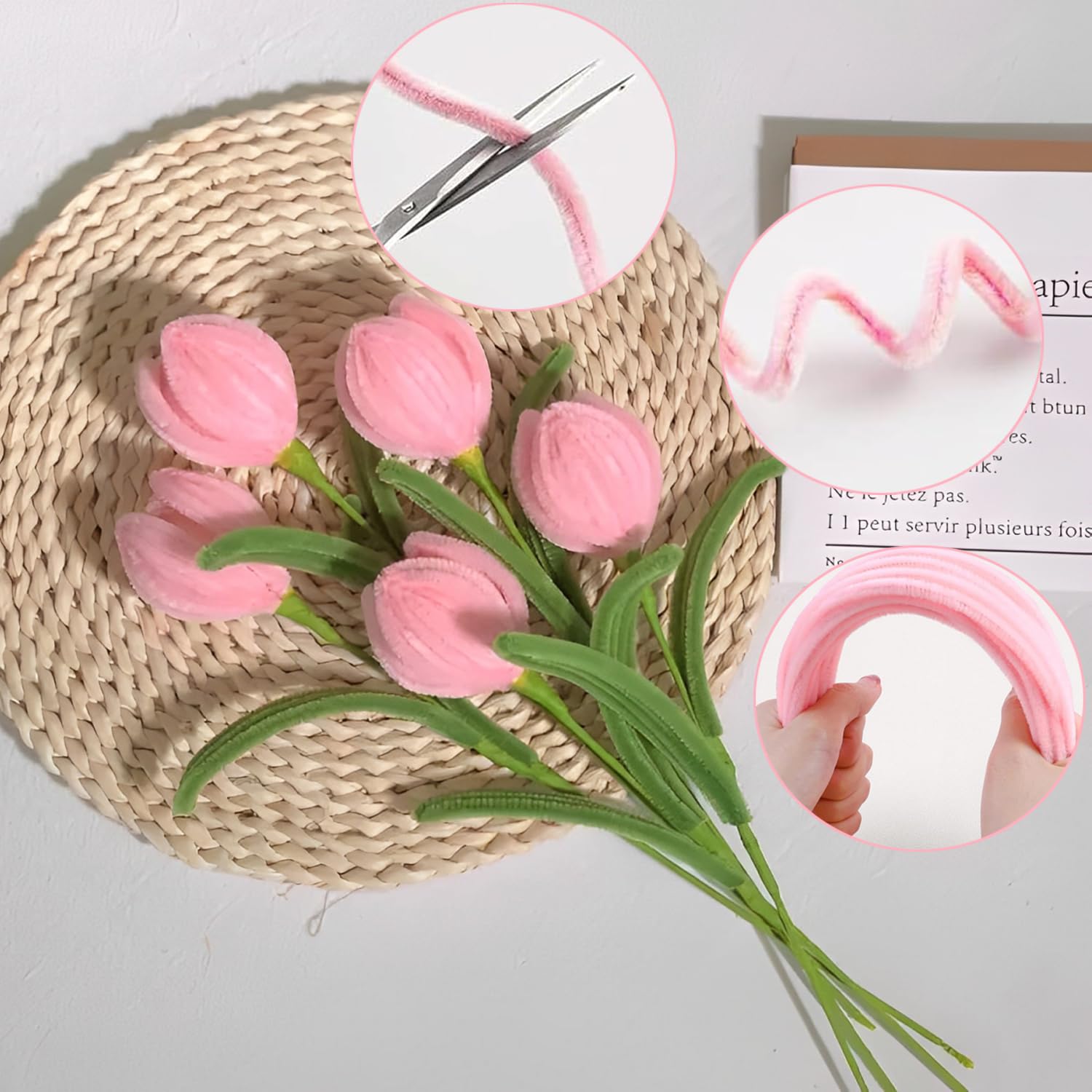 500 Stück Pfeifenreiniger Blumen Set Mit LED-Lichtern - DIY Bastelset Für Maiglöckchen & Blumensträuße