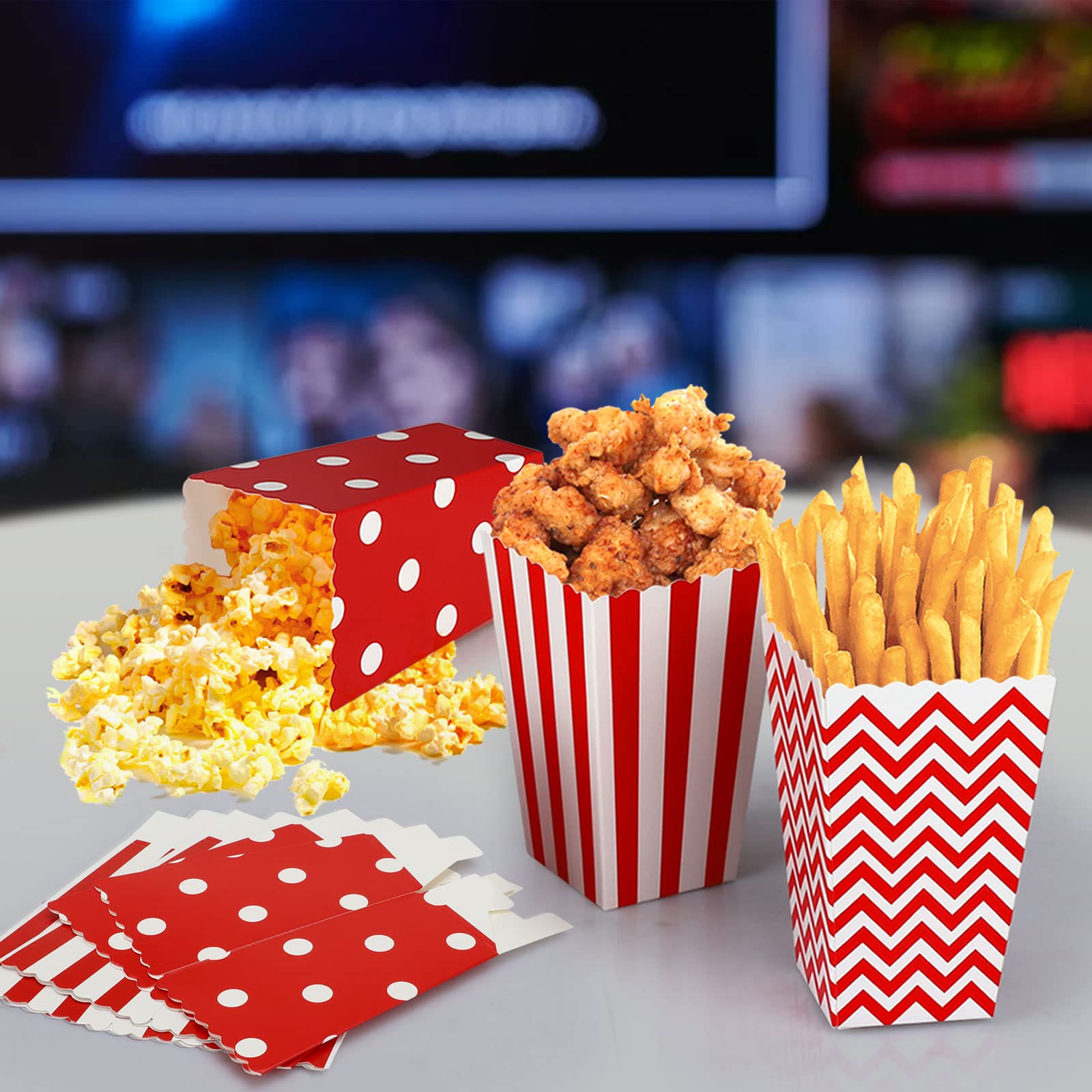 30 Stück Popcorn Tüten Rot-Weiß Gestreift - Party Popcorn Beutel Für Geburtstag & Feiern