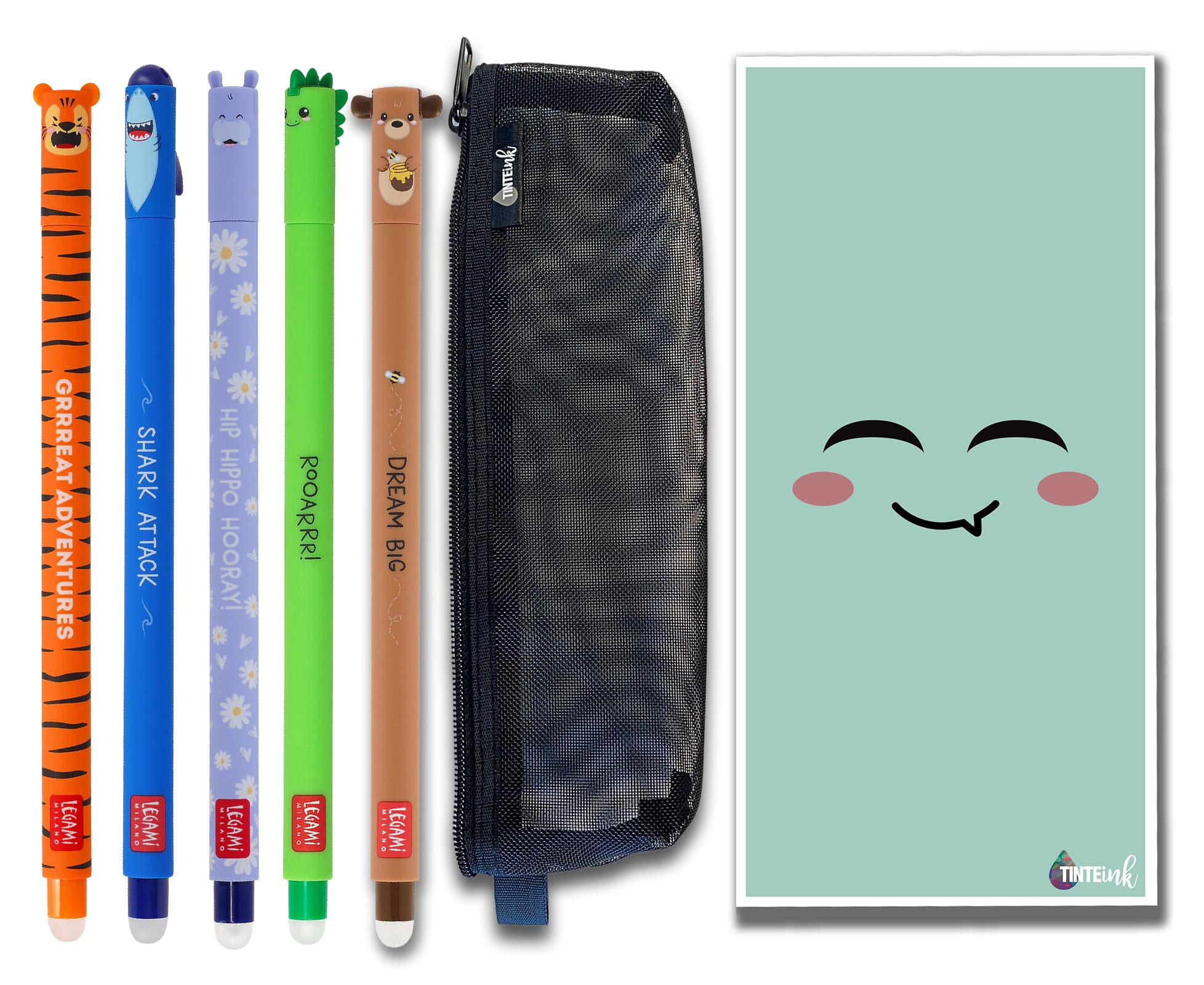 LEGAMI Gelstifte Set 5 Stück - Radierbare Stifte Mit 0,7mm Spitze & Süßen Motiven