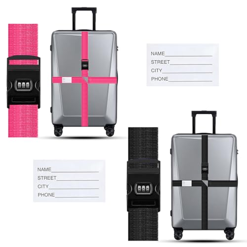 2 Stück Regenbogen Gepäckgurte - Verstellbare Koffergurte Mit Namensschild
