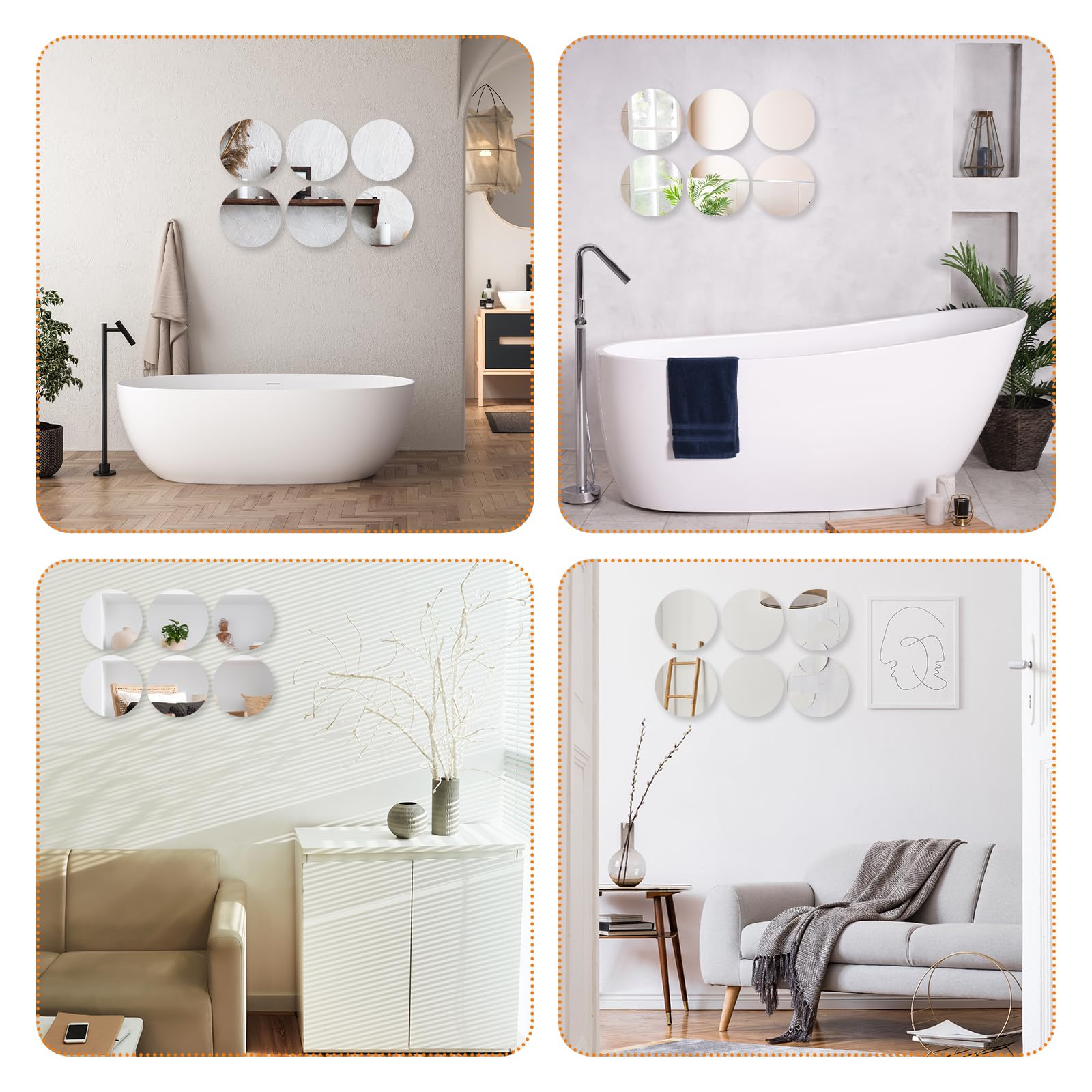 Willst du mehr Licht und Raumgefühl in deinen vier Wänden? Diese 6 runden Acryl-Spiegel sind perfekt für kreative Wanddekorationen! Mit 15cm Durchmesser und 2mm Stärke für klare Reflexion. \\n\\nBruchsicher und leicht - ideal für Haushalte mit Kindern oder Haustieren. Einfach Schutzfolie abziehen und auf glatte, saubere Flächen kleben. Die silberne Oberfläche wirkt modern und edel. \\n\\nPerfekt für Badezimmer, Schlafzimmer, Flur oder Kleiderschrank. Kombiniere die Spiegel zu Mustern oder verteile sie einzeln. Schaffe mehr Tiefe und Helligkeit in jedem Raum - ohne Bohren und ohne Risiko!