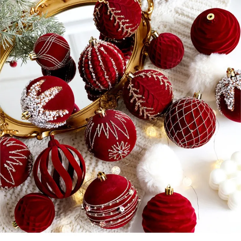 Miaikoe 15 Stück Samt Weihnachtskugeln - Rote Flockige Kugeln Für Festlichen Baumschmuck