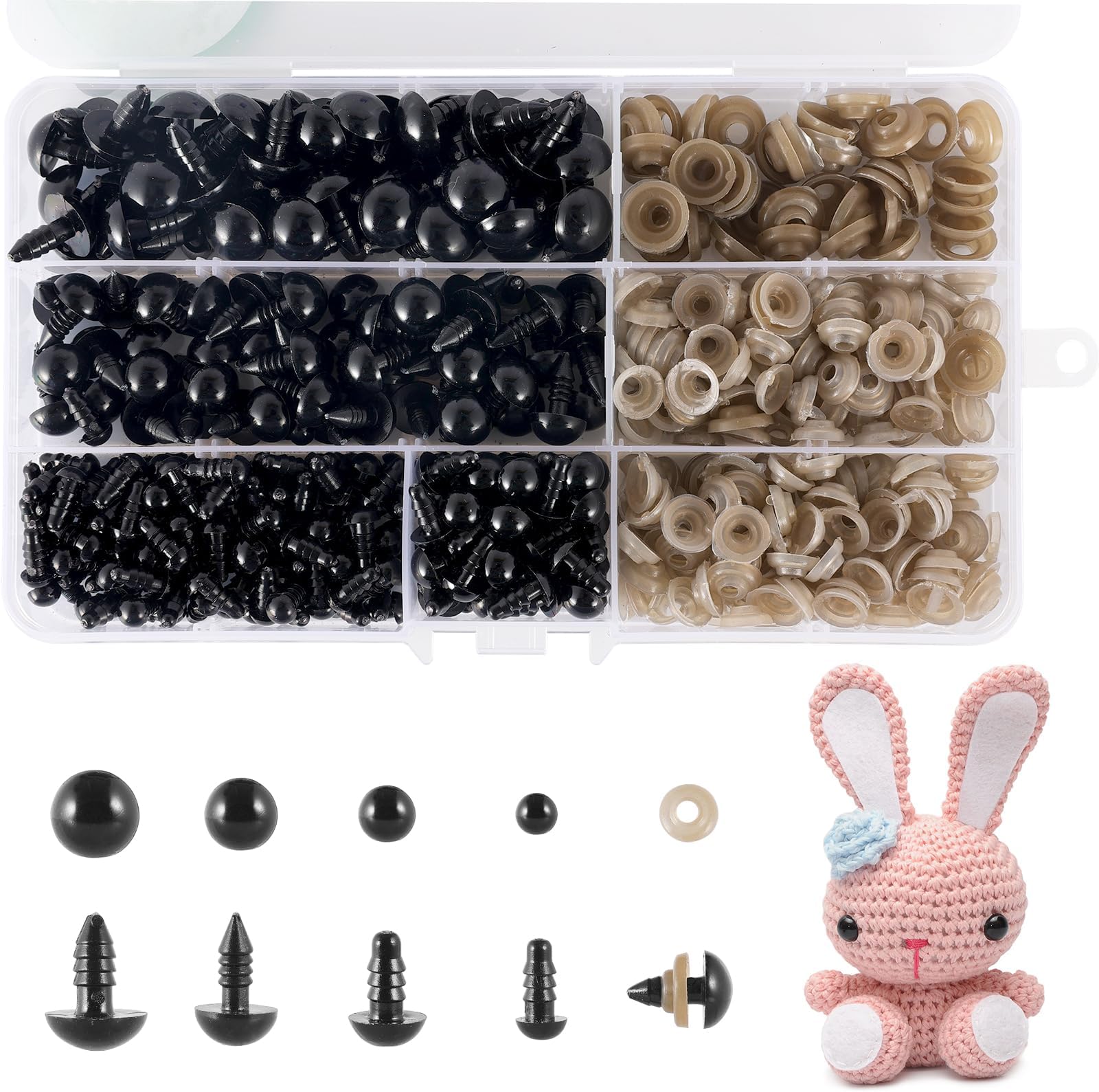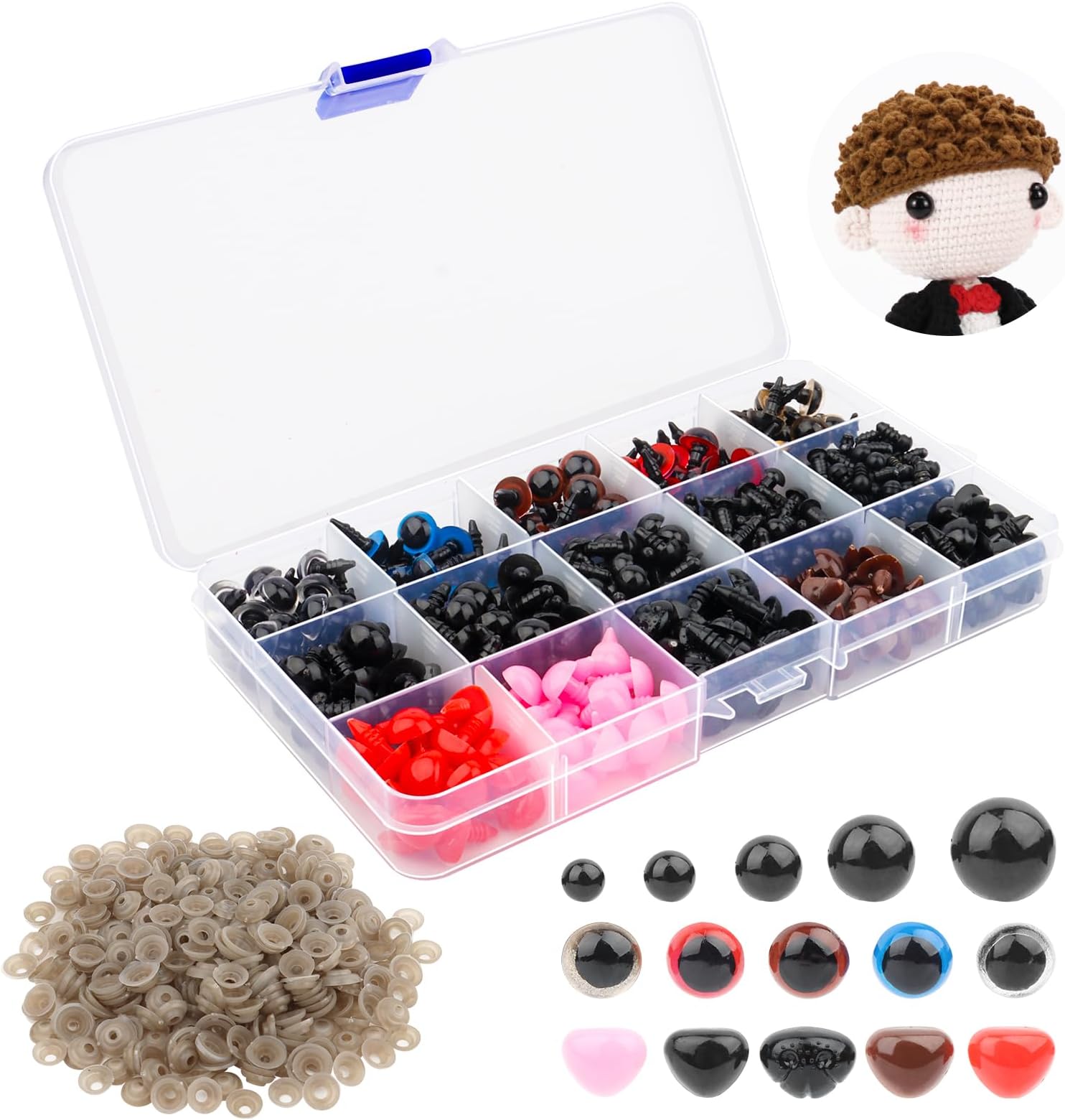 Mache deine Häkeltiere und Plüschfiguren zum Leben erweckt! Dieses umfangreiche Set mit 100 Sicherheitsaugen (16mm) gibt dir alles, was du für deine Kreationen brauchst. Jedes Auge kommt mit einer praktischen Unterlegscheibe - einfach durch den Stoff stecken und die Scheibe festdrücken, schon sind die Augen sicher befestigt und können nicht mehr herausfallen. Das Besondere: 100 bunte Glitzersteine in 10 verschiedenen Farben sind ebenfalls enthalten - rot, rosa, fuchsia, lila, dunkelgrün, hellgrün, dunkelblau, hellblau, gelb und orange. Perfekt für Teddybären, Puppen, Amigurumi-Figuren und alle möglichen DIY-Projekte. Aus hochwertigem Kunststoff, sicher und langlebig. Ein Traum für alle Häkel- und Bastelfans! Ob für eigene Kreationen oder als Geschenk für bastelbegeisterte Freunde - mit diesen Augen werden deine Werke noch niedlicher und persönlicher. Einfach zu verwenden und sofort einsatzbereit!