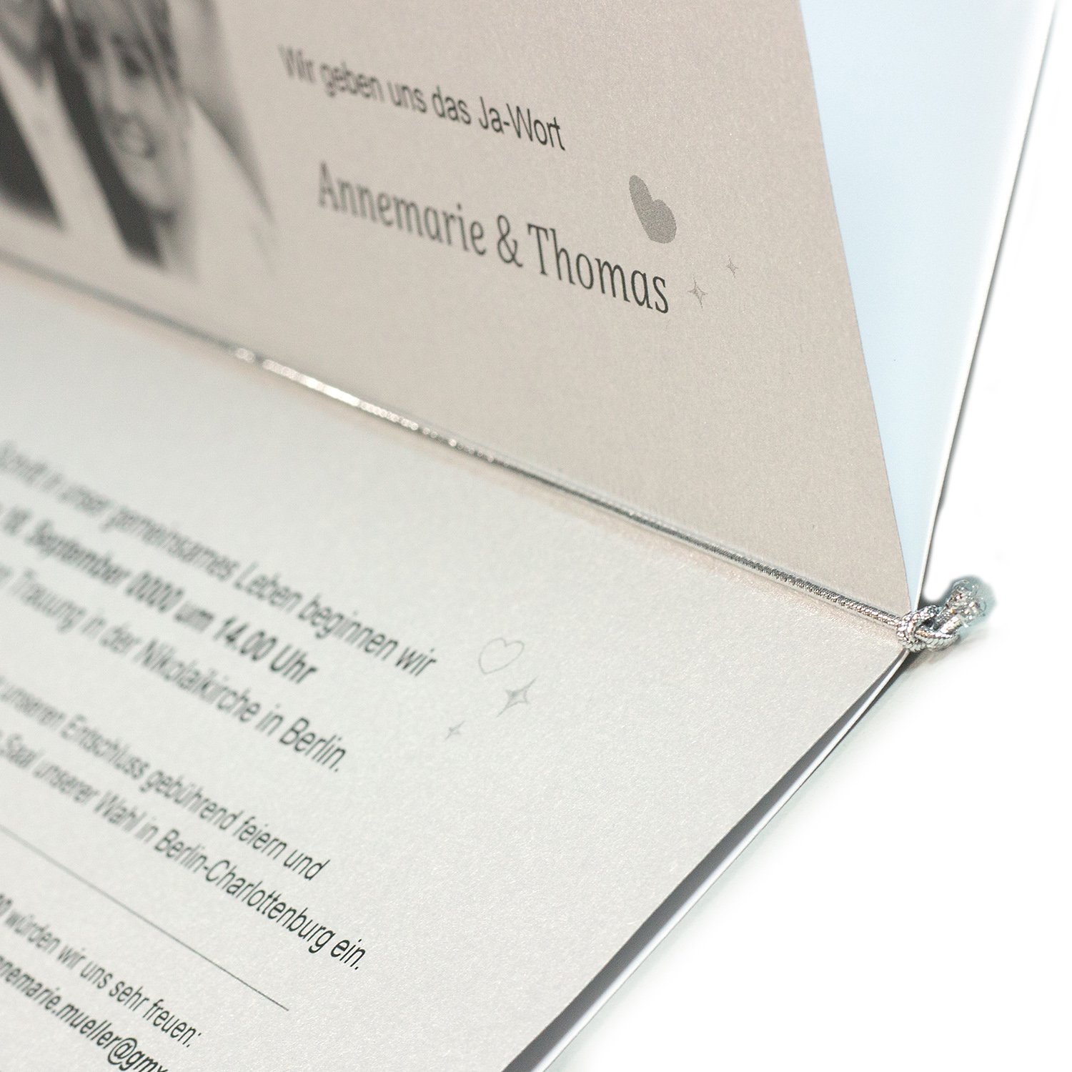 Perfekt für deine Einladungskarten! Diese 100 silbernen Metallic-Gummibänder halten deine Karten sicher zusammen. Mit 40 cm Länge ideal für DIN lang (21x10,5 cm) und A5 Karten (21x14,8 cm). Etwas kürzer als die Karten für perfekte Spannung. Machen jede Karte zum stylischen Hingucker! Besonders geeignet für Karten ab 170g/m² - bei dünnerem Papier einfach mehrere Blätter zusammenheften. Einfach um die Karte spannen und fertig! Ob für Hochzeiten, Geburtstage oder Firmeneinladungen - diese Bänder machen immer was her. Im Set sind 100 Bänder - genug für viele Karten! Plus kleine Überraschung in jeder Packung! Suchst du eine elegante Lösung für deine Karten? Hier wirst du fündig! Einfach bestellen und deine Einladungen professionell gestalten.