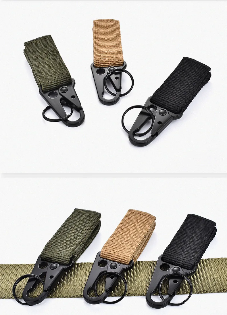Organisation war noch nie so taktisch! Diese 2 Aranticy Molle Clips aus robustem Polypropylen-Gurtband und stabilem Kunststoffhaken sind die perfekten Helfer für unterwegs. Mit 23cm Länge und 2,5cm Breite passen sie ideal an Rucksäcke, Gürtel oder Taschen mit MOLLE-System. Der leichte aber extrem stabile Clip (nur 60g pro Set) hält selbst bei Outdoor-Aktivitäten zuverlässig. Perfekt für Schlüssel, Taschenlampen, Werkzeuge oder Erste-Hilfe-Ausrüstung. Ob beim Camping, Wandern, Radfahren oder im täglichen Einsatz - diese Clips sorgen für Ordnung und schnellen Zugriff. Der Texturentriegelungsknopf ermöglicht einfaches An- und Abhängen. Deine Ausrüstung immer griffbereit und sicher verstaut!
