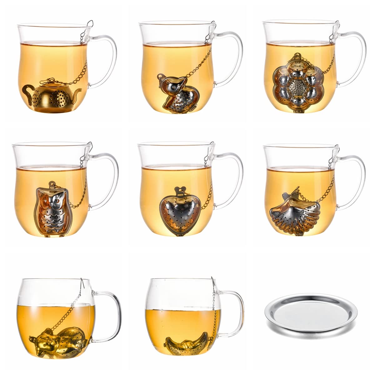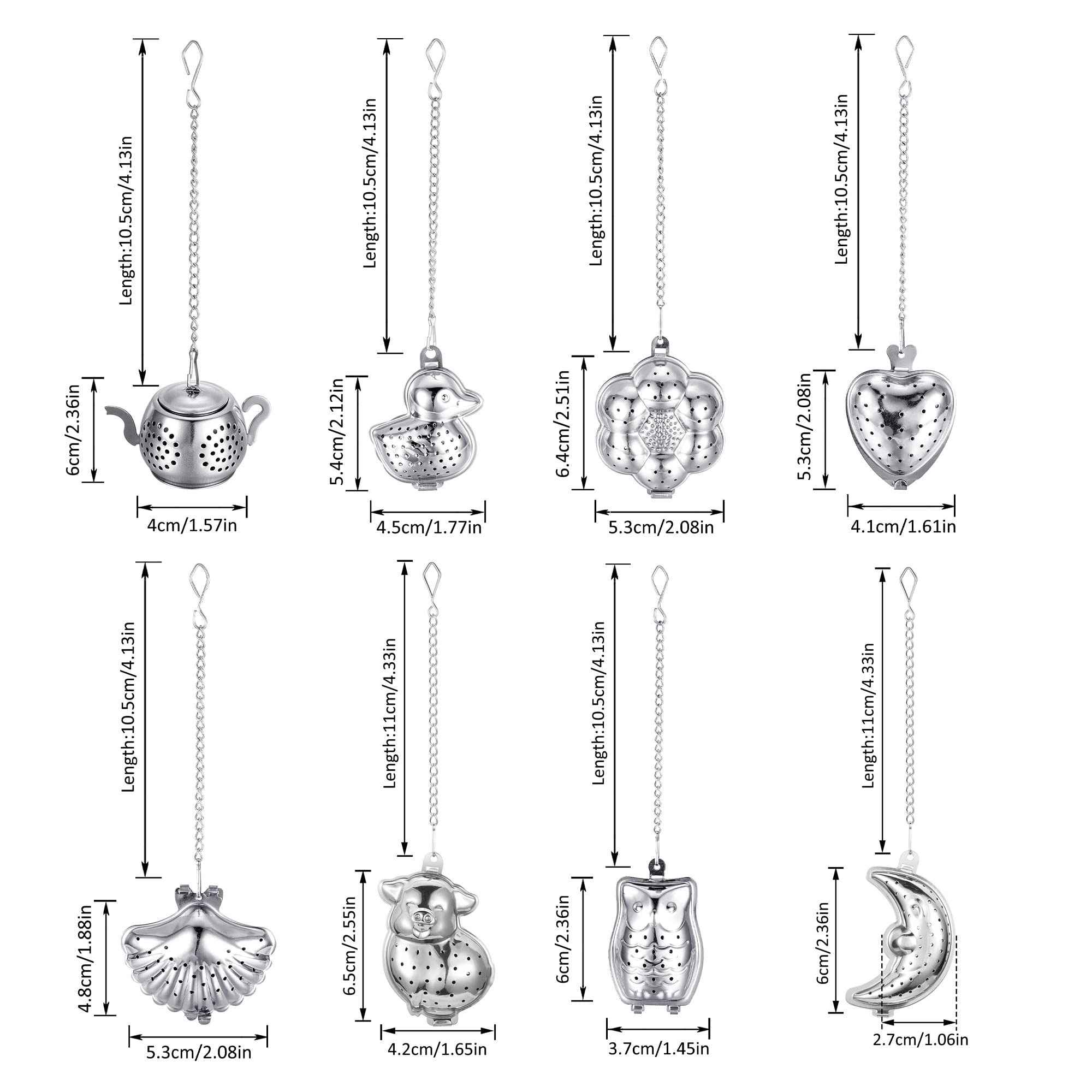 8 Stück Teesieb Edelstahl 304 | Mit Kette Für Teekanne & Tasse | Verschiedene Formen