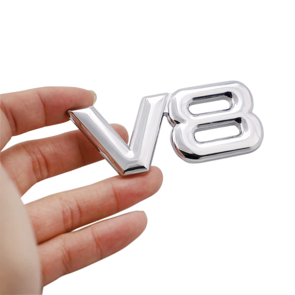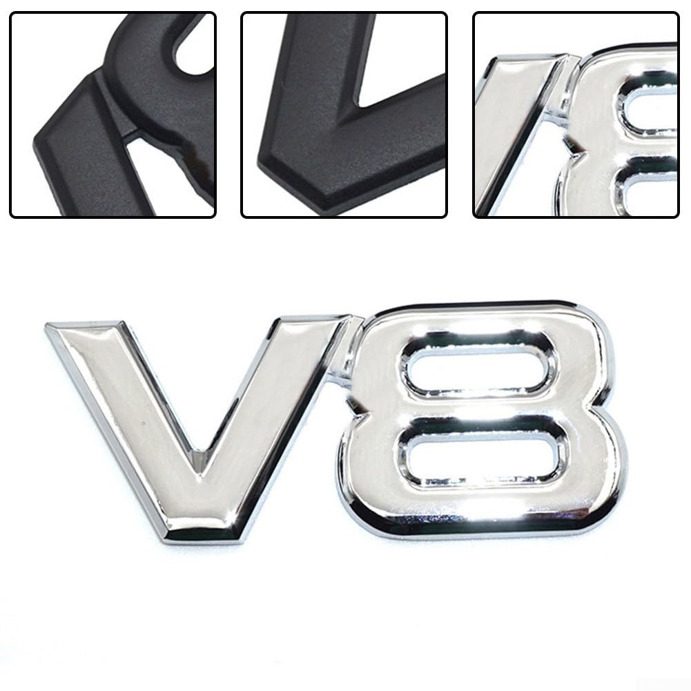 Verpasse deinem Auto den letzten Schliff! Diese 2 V8 Emblem Aufkleber aus Metall verleihen deinem Fahrzeug einen sportlichen Look. Maße: 10,3x4,3cm - perfekt sichtbar aber nicht aufdringlich. Aus hochwertigem, elastischem Metall gefertigt, geruchlos und verschleißfest. Einfache Anbringung auf Autotüren, Karosserie, Kofferraum oder Motorhaube. Das einzigartige V8-Design unterstreicht die Sportlichkeit deines Fahrzeugs. Haftet sicher und langlebig auf verschiedenen Oberflächen. Auch für Motorräder geeignet. Mit 2 Stück im Set hast du Ersatz oder kannst mehrere Stellen dekorieren. Einfach kleben und dein Auto wird zum Hingucker!