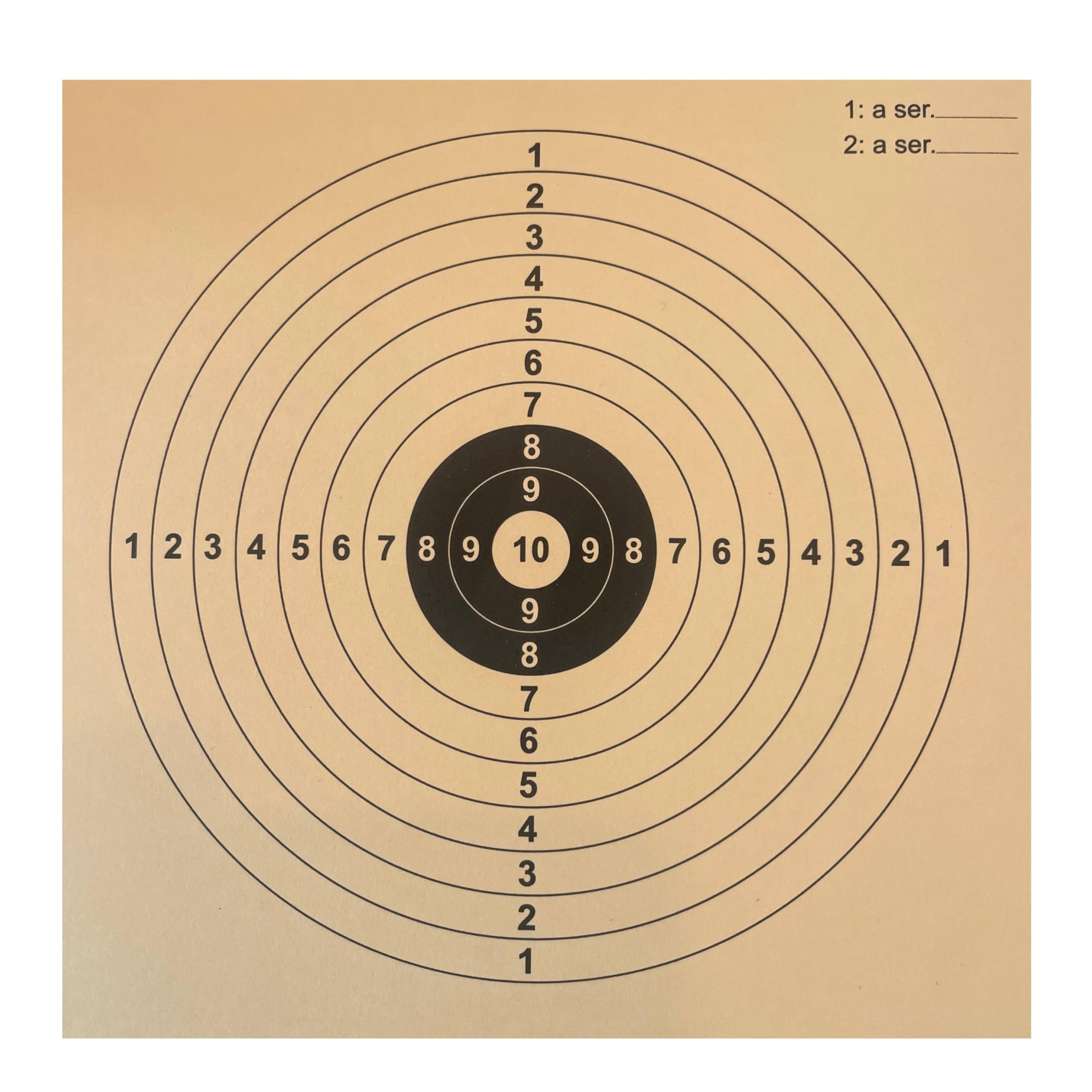 Professionelles Schießtraining war noch nie so einfach! Dieses Pack mit 100 Zielscheiben aus stabilem 300g/m² Karton ist perfekt für Airsoft, Druckluftwaffen, Pellet- und Stahlkugeln. Mit der Standardgröße von 14x14 cm passen sie ideal in die meisten Kugelfänger. Das Sepia-Farbdesign nach Wettkampfstandard sorgt für beste Sichtbarkeit. Praktisch: Leerfelder zum Eintragen von Punktzahl, Spielername und Seriennummer - super für Turniere und Trainings. Hält auch stärkeren Schüssen stand ohne zu reißen. Bring deine Treffsicherheit auf das nächste Level und hab immer genug Scheiben für intensive Trainingseinheiten parat!