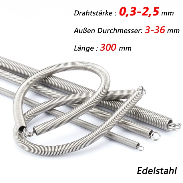 2 Stück Zugfedern Aus Federstahl - 2,0mm Draht, 17mm Außendurchmesser, 150mm Länge