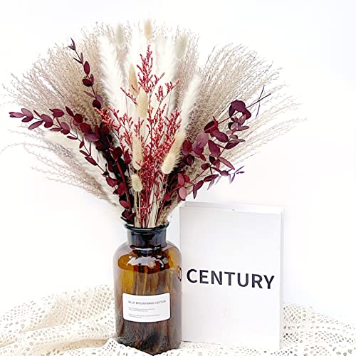 CEWUDA Trockenblumenstrauß 100 Stück - Pampasgras & Bunny Tails Für Herbstdeko