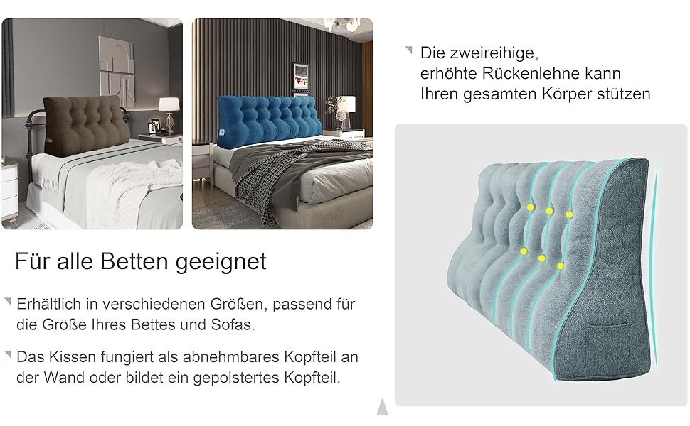 Z-hom Keil-Rückenkissen 200cm - Dreieckiges Lesekissen Mit Kopfteil Und Stützkissen