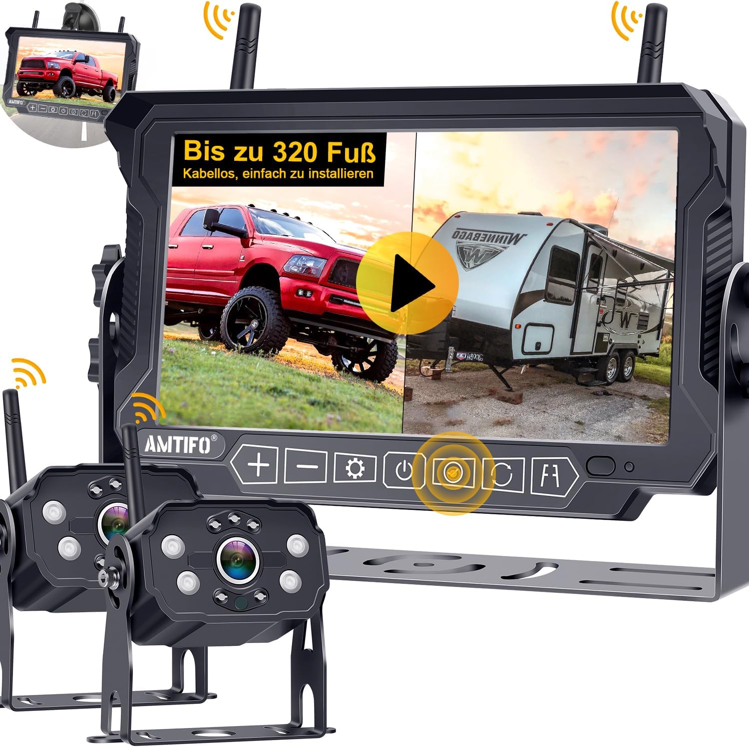 ERapta Rückfahrkamera Kabellos Mit 9 Zoll Monitor - 2 Kameras, Nachtsicht, Wasserdicht IP69