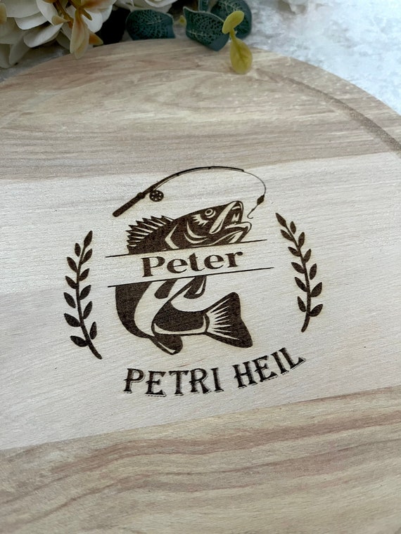 Frühstücksbrettchen Hecht Mit Gravur - Personalisiertes Schneidebrett Aus Ahornholz