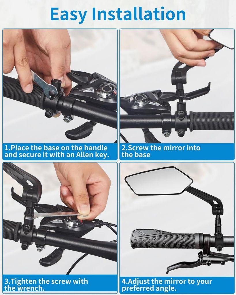 Fahrradfahren mit Rundumblick! Diese beiden praktischen Fahrradspiegel von Xynovate geben dir volle Kontrolle über den Verkehr hinter dir. Mit 360° Drehfunktion und klarem HD-Blickfeld - so siehst du wirklich alles, was von hinten kommt. Perfekt für den täglichen Weg zur Arbeit, Wochenendtouren oder einfach für mehr Sicherheit im Stadtverkehr. Die Spiegel lassen sich komplett einklappen, wenn du sie nicht brauchst. Aus bruchfestem PC-Material mit Metallkern, die auch bei Vibrationen auf unebenen Straßen ein stabiles Bild liefern. Die konvexe Glasfläche bietet ein größeres Sichtfeld als normale Spiegel und eliminiert lästige tote Winkel. Super einfach zu montieren - einfach auf den Lenker schieben, Knopf festziehen und los geht's! Passt auf City-Bikes, Mountainbikes, E-Bikes und Trekkingräder. Mit polierter Spiegelfläche, die Regenwasser abperlen lässt. Fahr einfach sorgenfrei und behalte den Überblick!