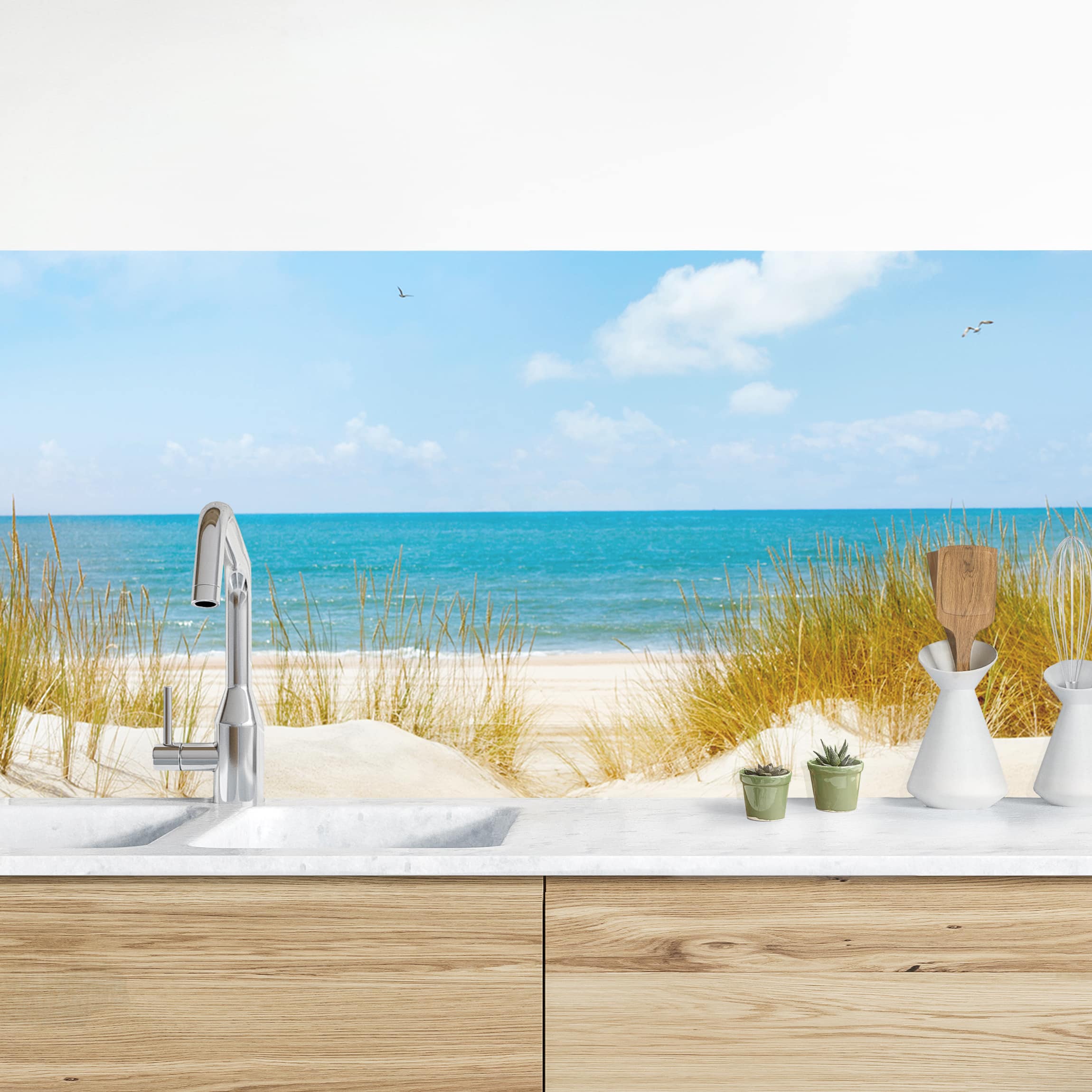 Küchenrückwand Ostsee Strand Design | Selbstklebend 220x60cm | Premium Hart-PVC 0,4mm | Für Fliesen