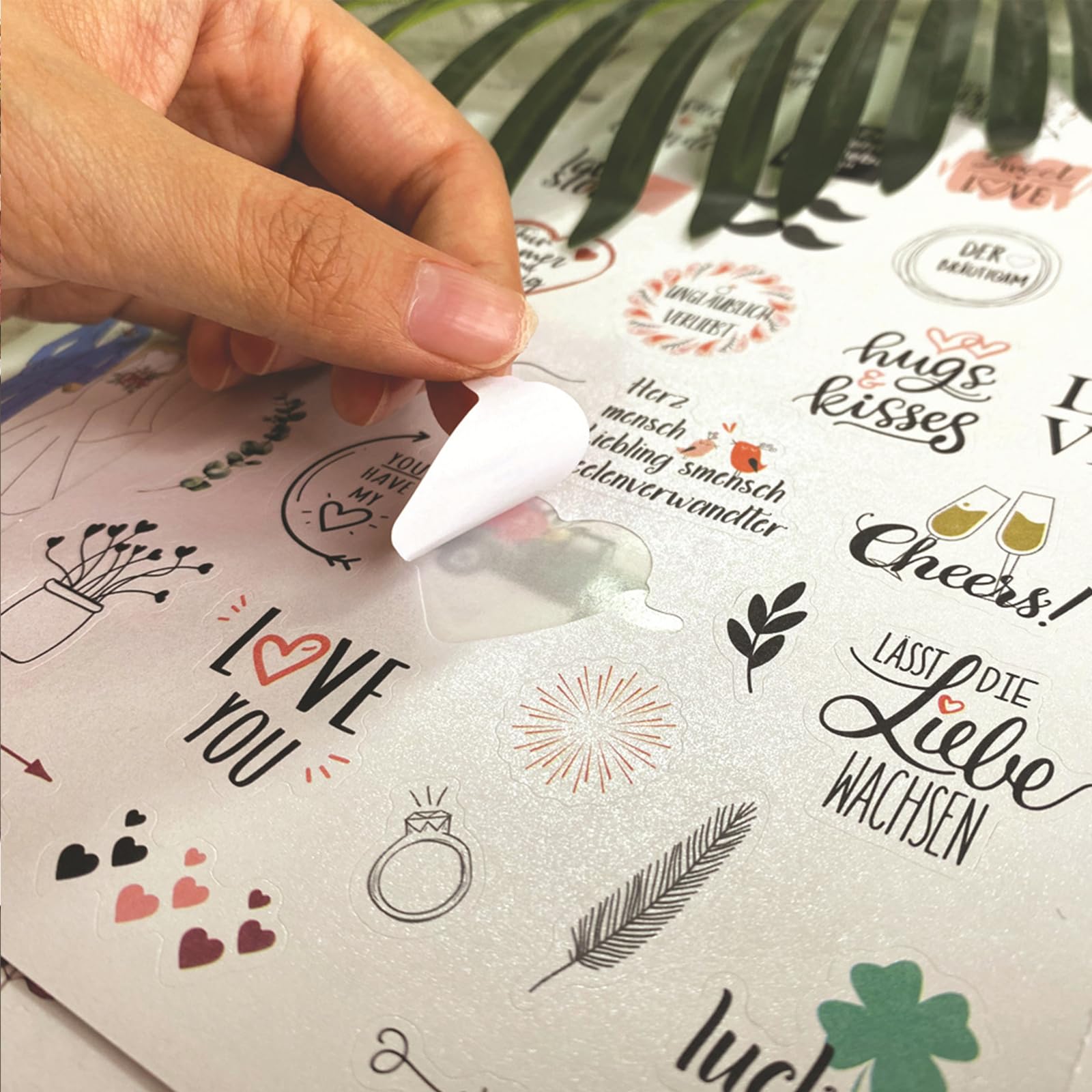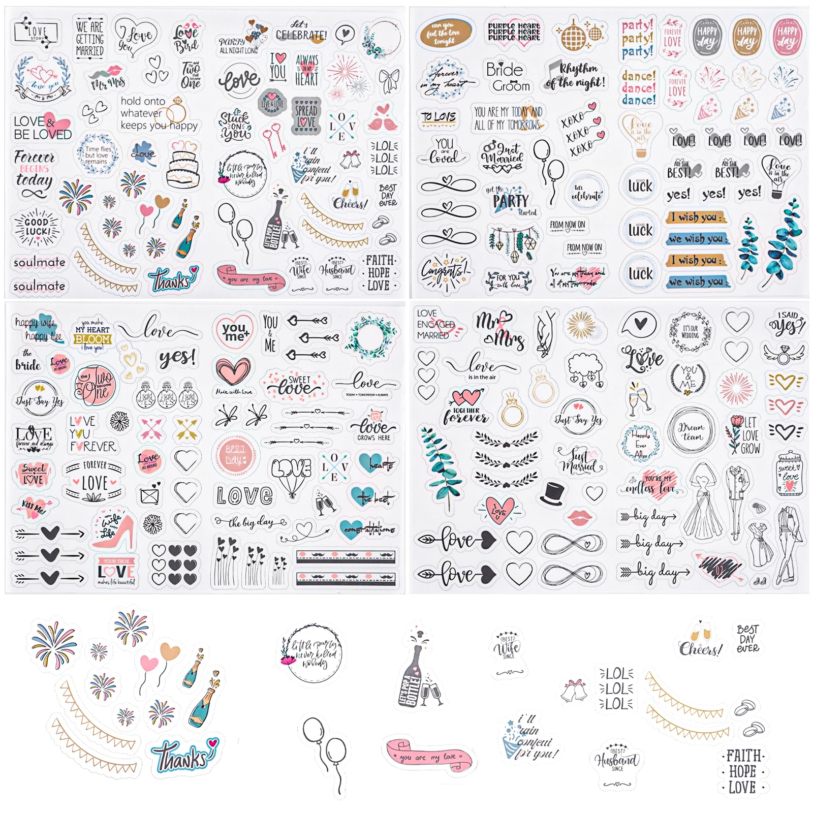 Hochzeits-Sticker Set - 266 Aufkleber Für Gästebuch Und Fotoalbum Auf Deutsch & Englisch