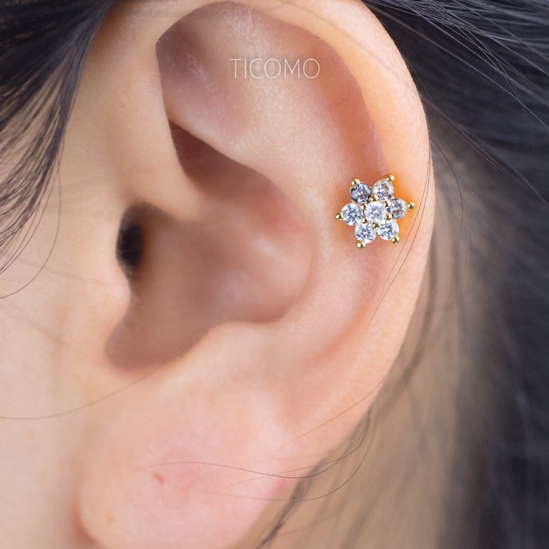 2 Stück Conch Piercing Gold 16G - Helix Ohrring Mit CZ Steinen Für Knorpel Piercing