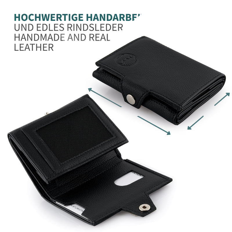 So praktisch und schlank! Dieses Mini-Portemonnaie von COYUN ist perfekt für unterwegs. Mit 8 Fächern für deine wichtigsten Karten inklusive ID-Fenster. Aus hochwertigem PU-Leder mit RFID-Schutz - deine Daten sind sicher! Maße: 11,7x8,1x0,5cm und nur 27g leicht. Passt in jede Hosentasche ohne unschöne Beule. Modernes, minimalistisches Design in Schwarz. Mit Schnellzugriff-Fach für deine Lieblingskarte. Einfach stylisch und super funktional! Perfekt für alle die es schlicht und praktisch mögen.