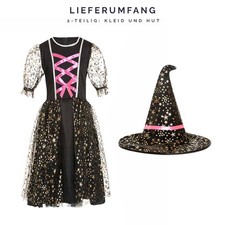 Hexenkostüm Kinder Mädchen 4-teilig - Komplett-Set Für Halloween & Karneval