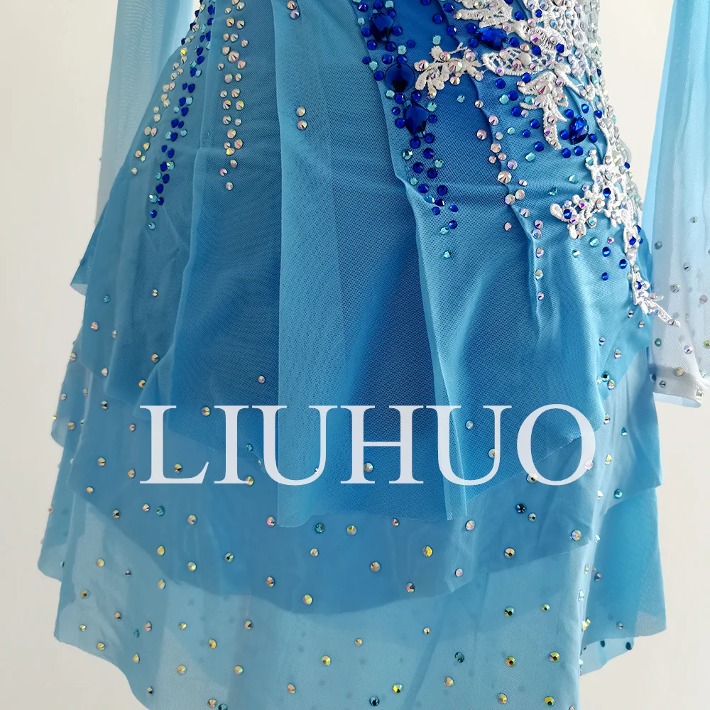 LIUHUO Eiskunstlaufkleid Mädchen - Blauer Farbverlauf Mit V-Ausschnitt