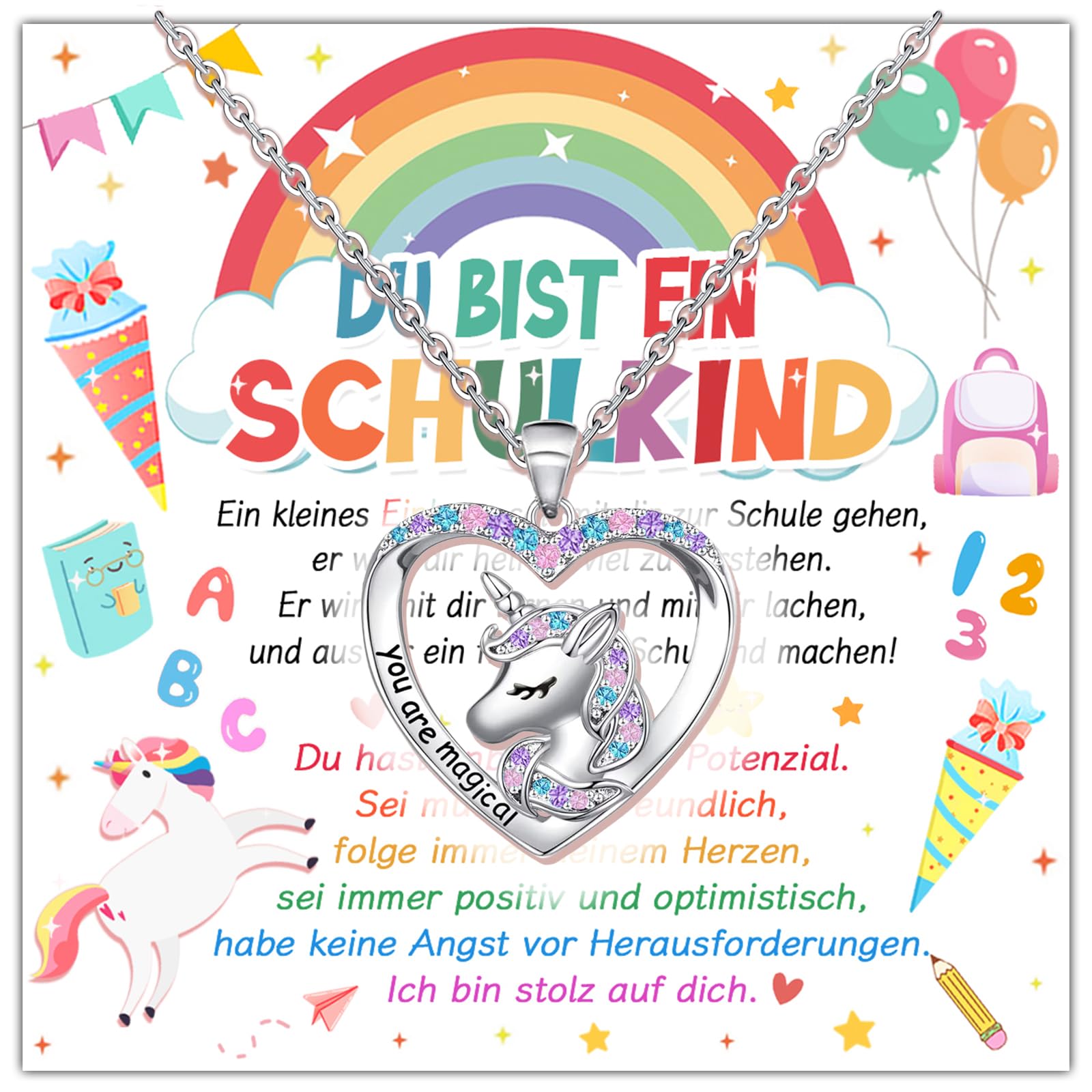 Einschulungsgeschenk Mädchen - Einhorn Halskette Mit Glückwunschkarte Für Schulanfang