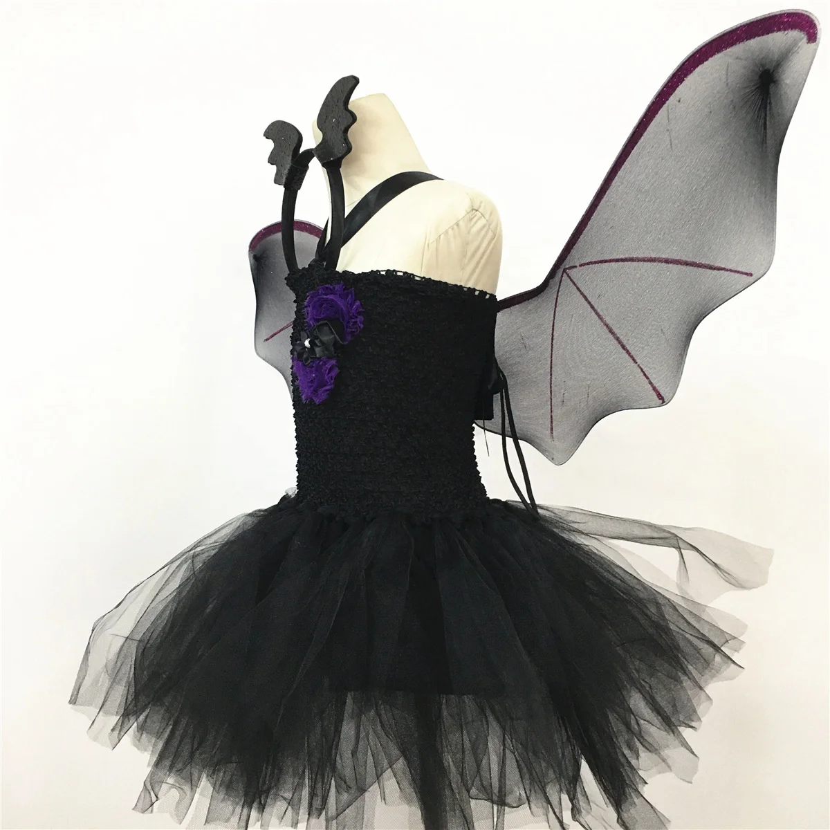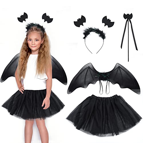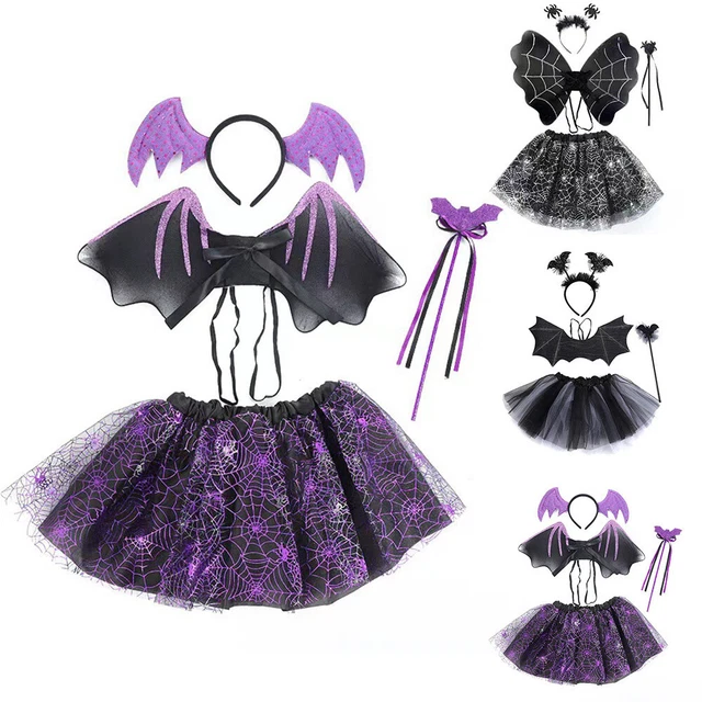 Fledermaus Kostüm Mädchen - Halloween Hexen Outfit Mit Flügeln & Tasche