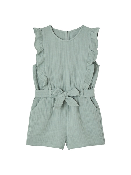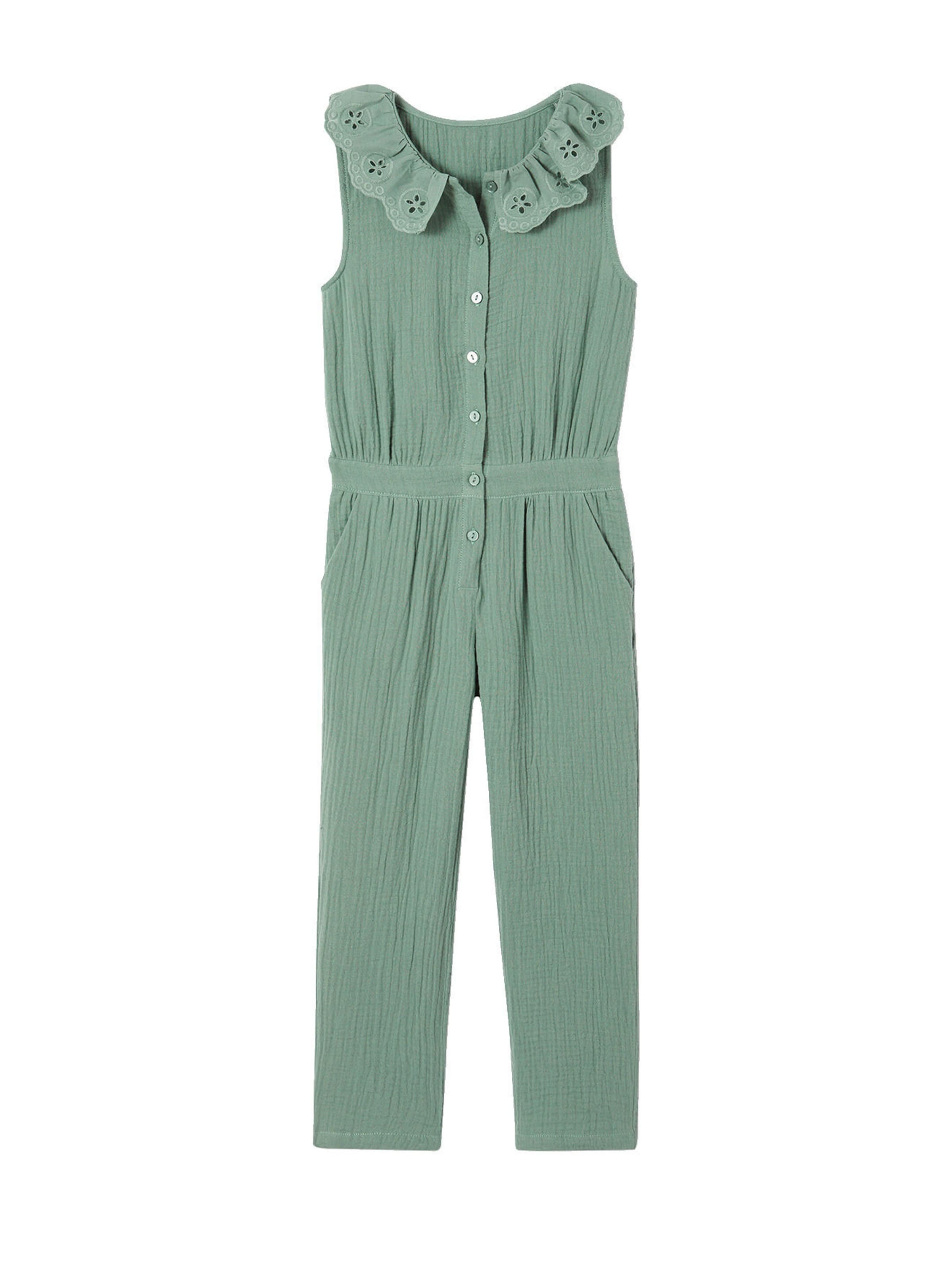 Vertbaudet Mädchen Jumpsuit Aus Musselin - Salbeigrün Mit Besticktem Kragen
