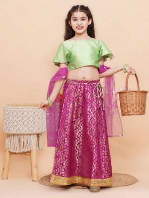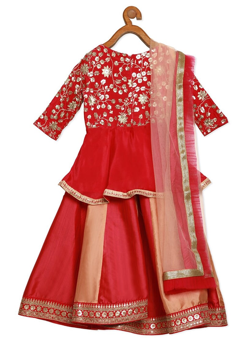 AJ DEZINES Mädchen Lehenga Choli Set - Baumwolle Kathyavadi Stickerei Mit Dupatta