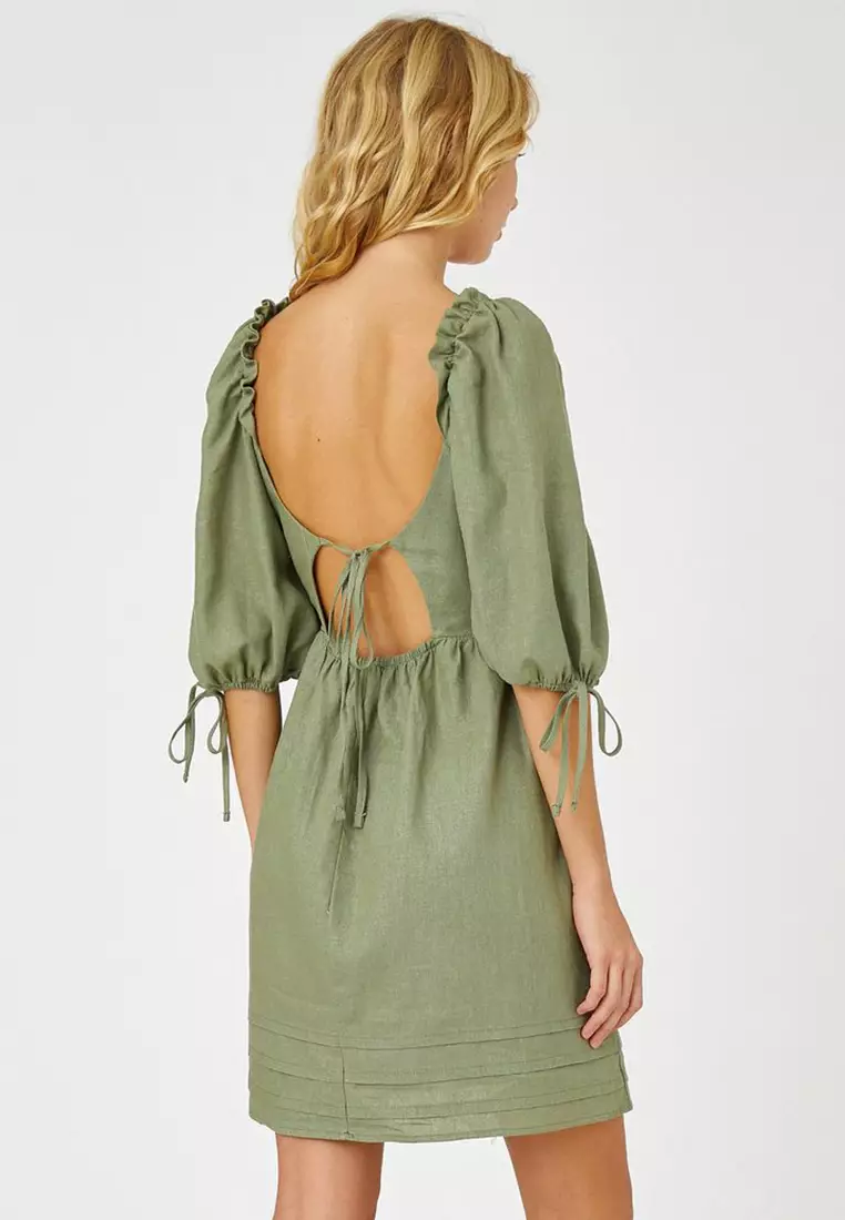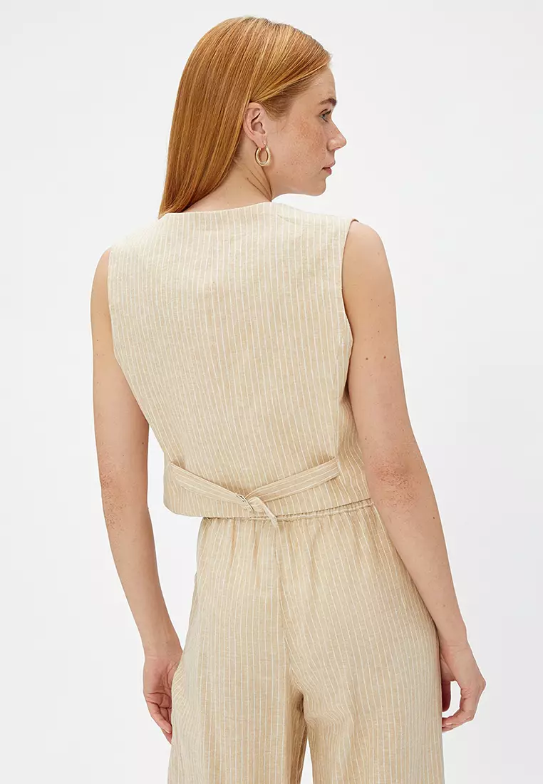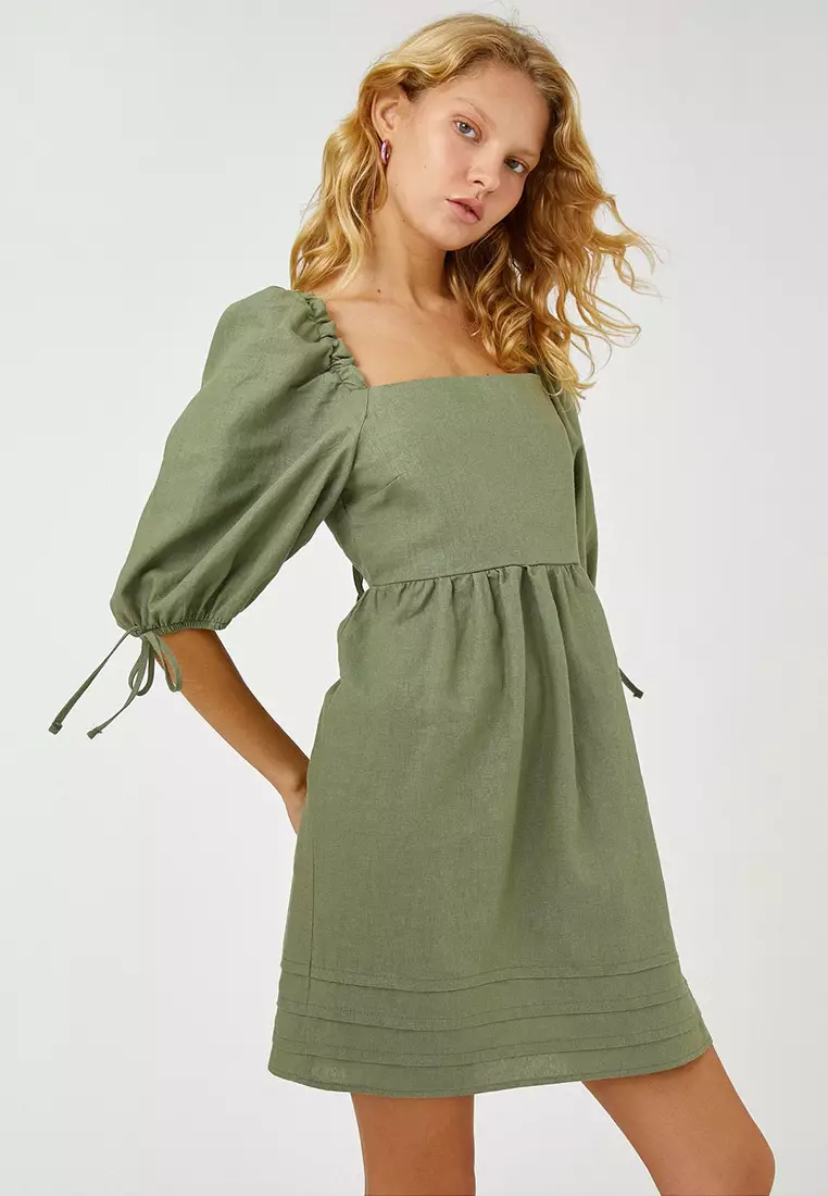 Koton Mädchen Leinen Crop Top Mit Schmetterlingsärmeln - Square Neck Bluse