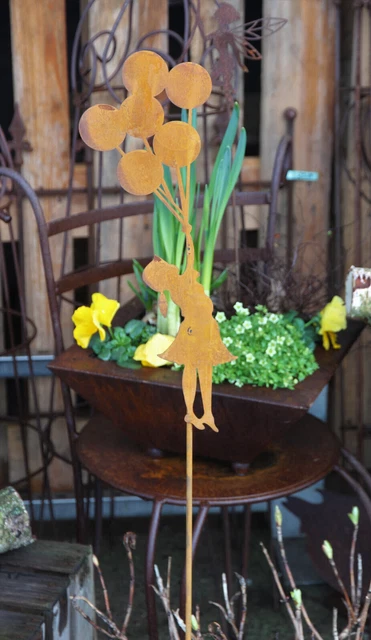 Wie niedlich ist denn diese Gartendeko? Das 'Mädchen mit Luftballons' aus Metall mit natürlicher Rost-Optik ist ein absoluter Hingucker für deinen Garten! Mit 42 cm Größe macht sie richtig was her und bringt verspielten Charme in deine Grünanlage. Aus hochwertigem Stahl, der ganzjährig draußen bleiben kann - der Rost wird mit der Zeit sogar noch schöner und natürlicher. Handgefertigt von der Firma Bornhöft, also jedes Stück ein Unikat! Perfekt zum Aufhängen an Bäumen, Zäunen oder Wänden. Aber Achtung: Kann scharfe Kanten haben, also besser außer Reichweite von Kindern und Haustieren aufbewahren. Einfach aufhängen und sich über den romantischen Blickfang im Garten freuen. Zeitloses Design zum fairen Preis - was will man mehr?