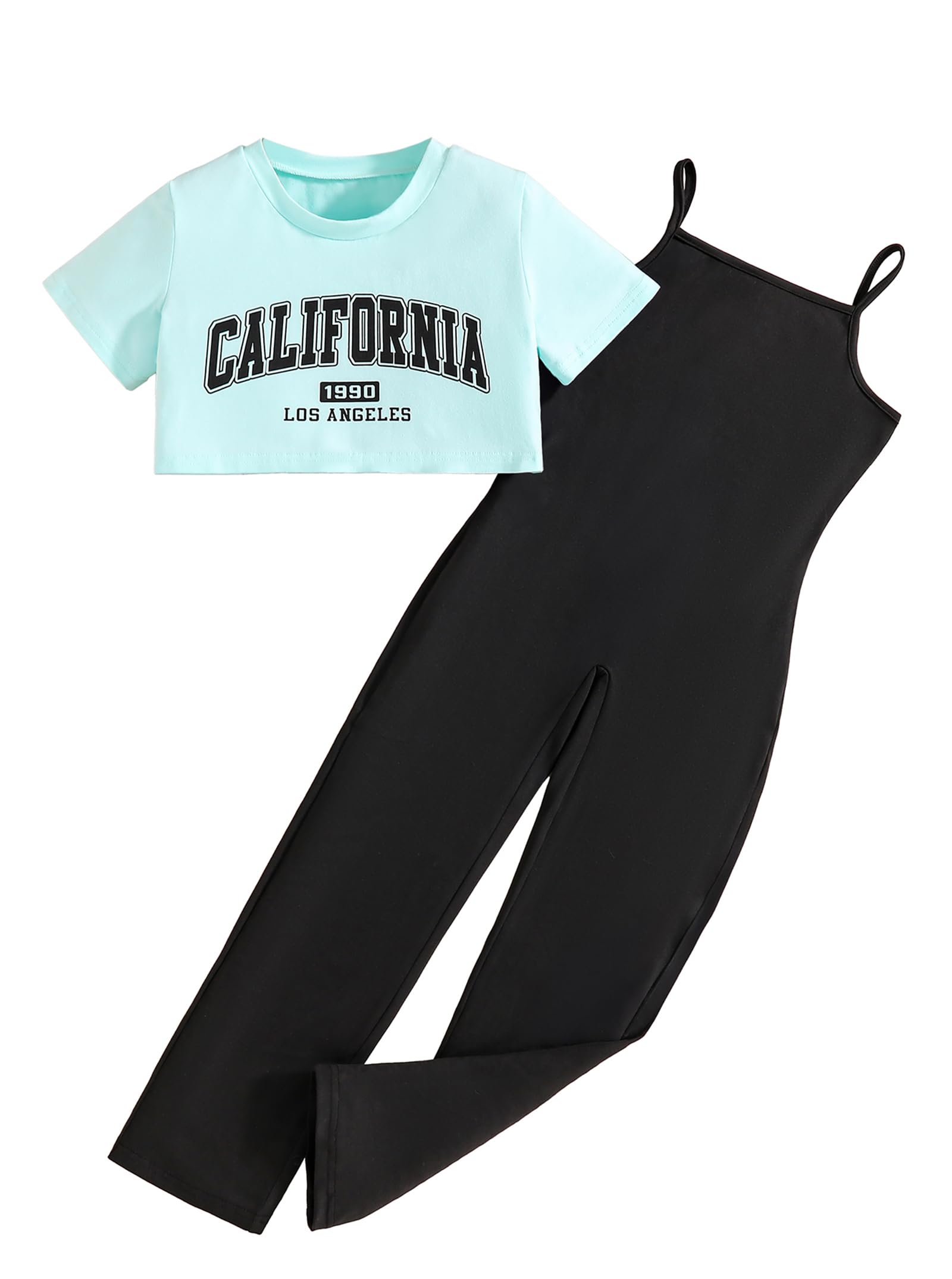 Total süßes 2-teiliges Set für Mädchen! Bestehend aus einem kurzärmeligen Crop Top mit coolem Buchstaben-Print und einem bequemen Cami-Jumpsuit mit Spaghettiträgern. Aus weichem, dehnbarem Stoff der nicht durchsichtig ist - super angenehm zu tragen. Perfekt für den Sommer, Frühling oder Herbst. Ob für die Schule, Shopping, Partys oder einfach zum Relaxen zu Hause - dieses Outfit macht immer eine gute Figur! Einfach zu pflegen: Hand- oder Maschinenwäsche bei 30°C. Tipp: Vor dem Kauf die Größentabelle checken für die perfekte Passform. Ein echter Hingeeper für stylische Mädchen!
