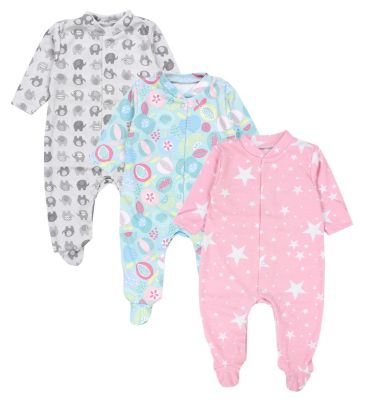Baby Mädchen Schlafstrampler 3er Pack - Rosa Blumen & Obst Design