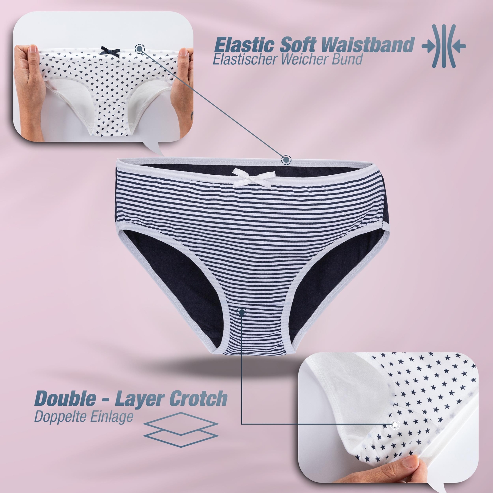Dieses 7er Pack mit süßen Mädchen-Slips ist die Grundausstattung für jede Kinderkommode! Aus weicher Baumwolle mit Elasthan für perfekte Passform und Dehnbarkeit. Die süßen Motive machen jeden Tag zum kleinen Modestatement. In den Größen 92-158 für Mädchen von 2-13 Jahren - da ist für jedes Alter was dabei. Der weiche Bund schneidet nicht ein und die flache Naht stört nicht unter der Kleidung. Atmungsaktiv und hautfreundlich - perfekt für sensible Kinderhaut. Bei 30°C waschbar und trocknergeeignet. Praktisch für den Kindergarten, Schule oder zu Hause. Mit verschiedenen Designs in jedem Pack - so hat deine Kleine immer Abwechslung. Macht das morgendliche Anziehen leichter, weil jedes Slip ein neues Lieblingsteil sein kann. Einfach bestellen und die Unterwäsche-Sorgen sind für die nächste Zeit vom Tisch!