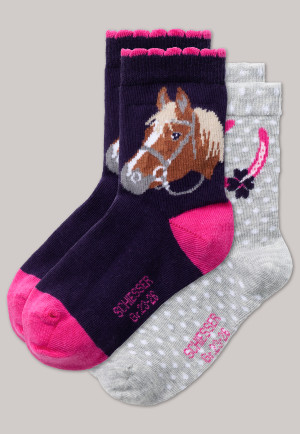 Hey, suchst du süße, bequeme Socken für deine Tochter? Dieser 5er-Pack von Schiesser hat alles, was Kinderfüße glücklich macht! Super weiche Baumwolle und niedliche Designs mit kleinen Katzen-Gesichtern und Öhrchen am Saum. \\n\\nIm Pack sind 5 verschiedene Socken: \\n- 2x mit Leo-Muster in Rosé und Dunkelblau \\n- 1x blau-weiß geringelt \\n- 2x Uni in Dunkelblau und Rosé \\n\\nJede Socke hat dieses süße Katzengesicht mit Öhrchen - total niedlich! Die Stay-Fresh Ausrüstung sorgt dafür, dass die Füße trocken bleiben und nicht so schnell müffeln. \\n\\nPerfekt für Kindergarten, Schule oder einfach zum Rumtoben zu Hause. Die Qualität von Schiesser kennt man ja - halten was aus und gehen nicht so schnell kapopt. \\n\\nMit 5 Paar auf einmal ist die Sockenschublade wieder gut gefüllt und du hast immer Ersatz parat. Einfach waschen und tragen - die Farben bleiben schön kräftig. \\n\\nAbsolute Empfehlung für alle Mädchen, die es bunt und gemustert lieben!
