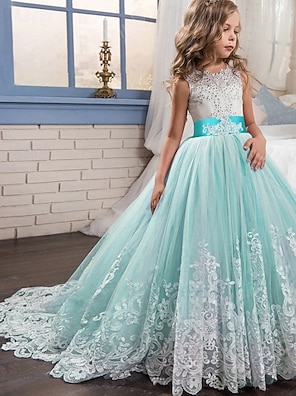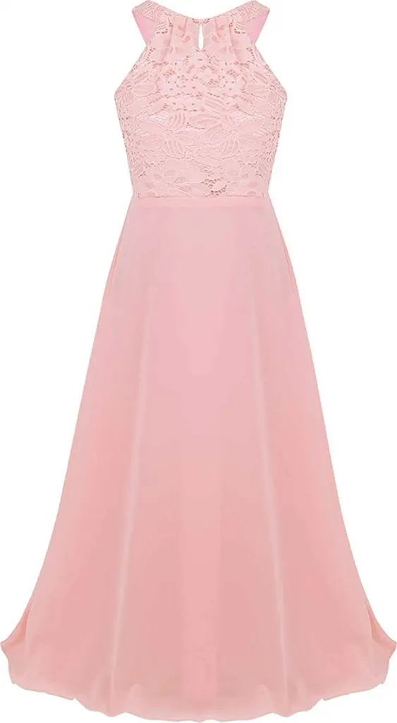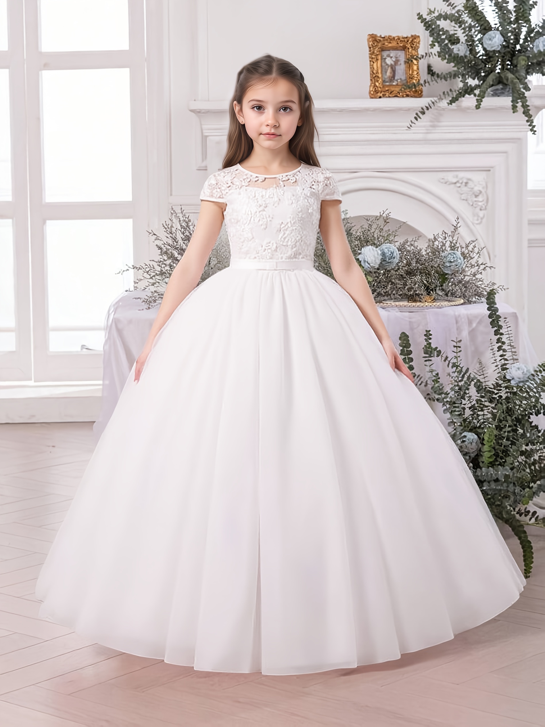ALLOVIN Mädchen Spitzenkleid Mit Perlen-Schleife - A-Linie Für Hochzeit & Party
