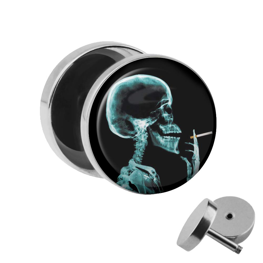 Treuheld Ohrstecker Schädel Röntgen Motiv - Fake Plug 10mm Edelstahl Silber